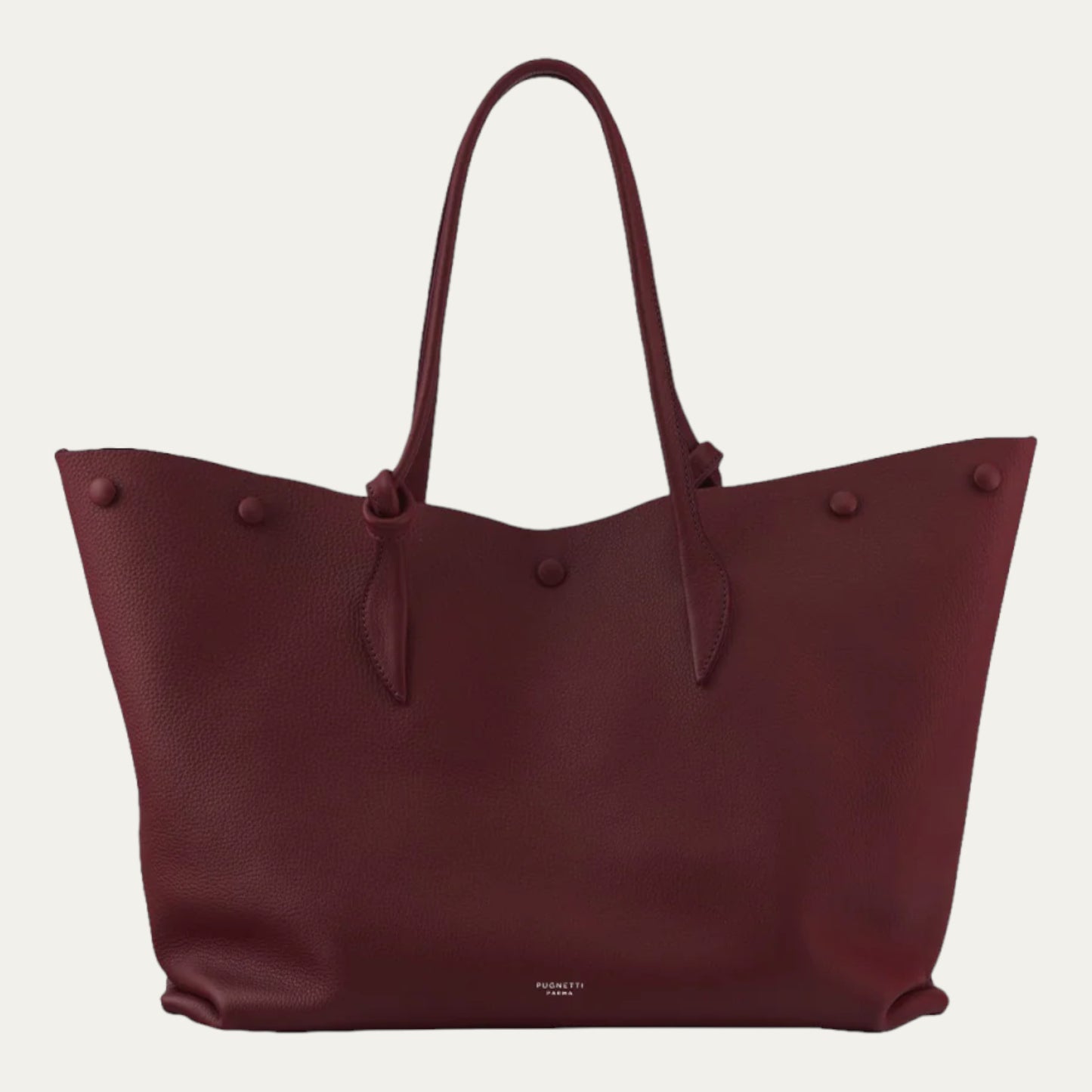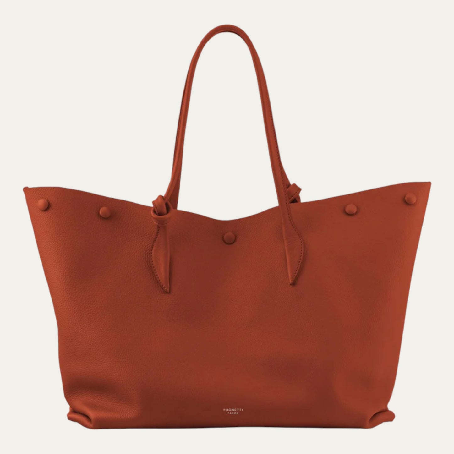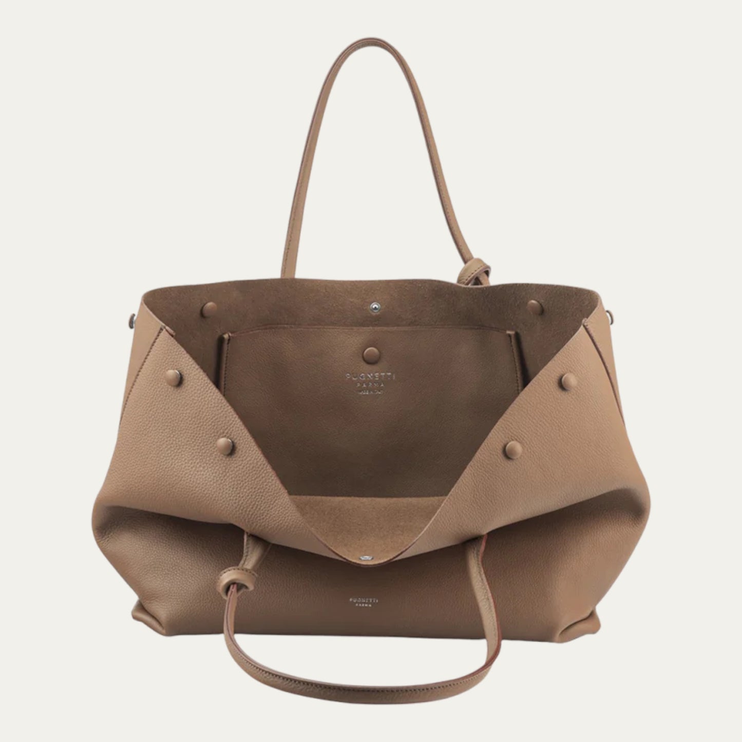 Made of soft tumbled calfskin, unlined interior, very soft leather handle and finely polished nautical steel metals.