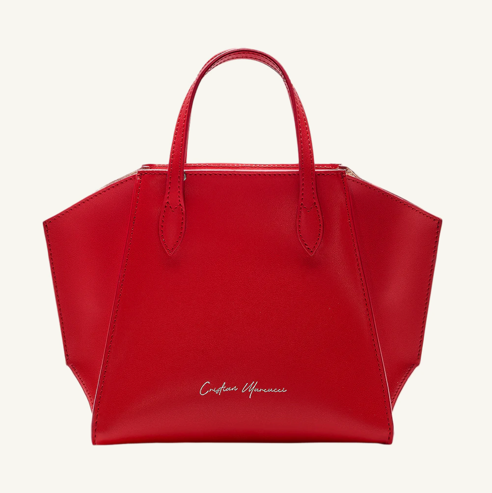 Gemma S is a winged tote bag crafted by Cristian Marcucci in Florence. Made of calfskin leather with suede sides, the textural variety of Gemma S renders this bag truly one of a kind. With a spacious interior and double zipper closure, your things are sure to stay put. Attach the strap for a more casual, on-the-go look!