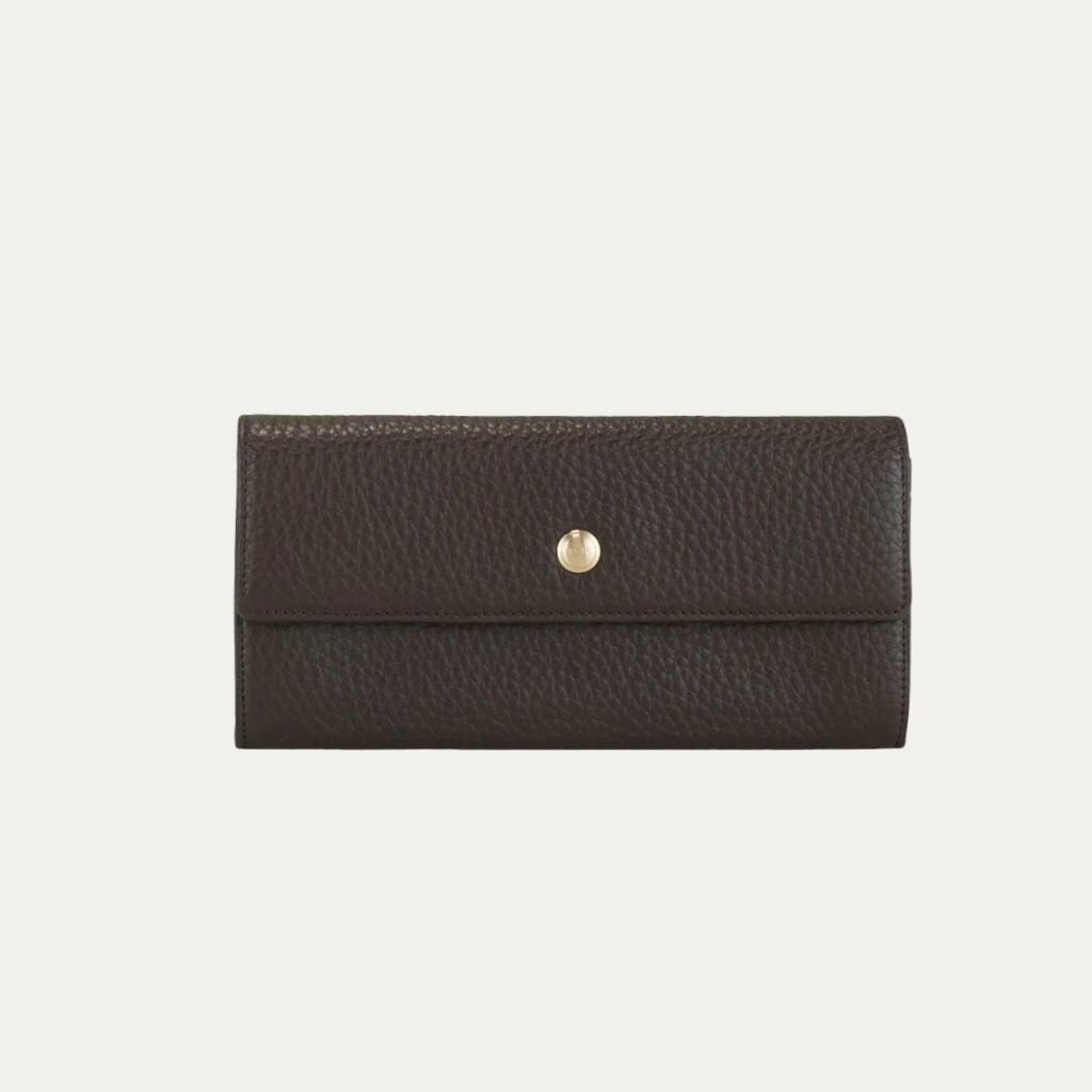 Giordana is a wallet crafted by Ireri. Made of soft calfskin leather, it features a classic long wallet design for holding all of your essentials securely. With a button closure that keeps your cash and cards within reach, you will never have to fumble for your necessities ever again.