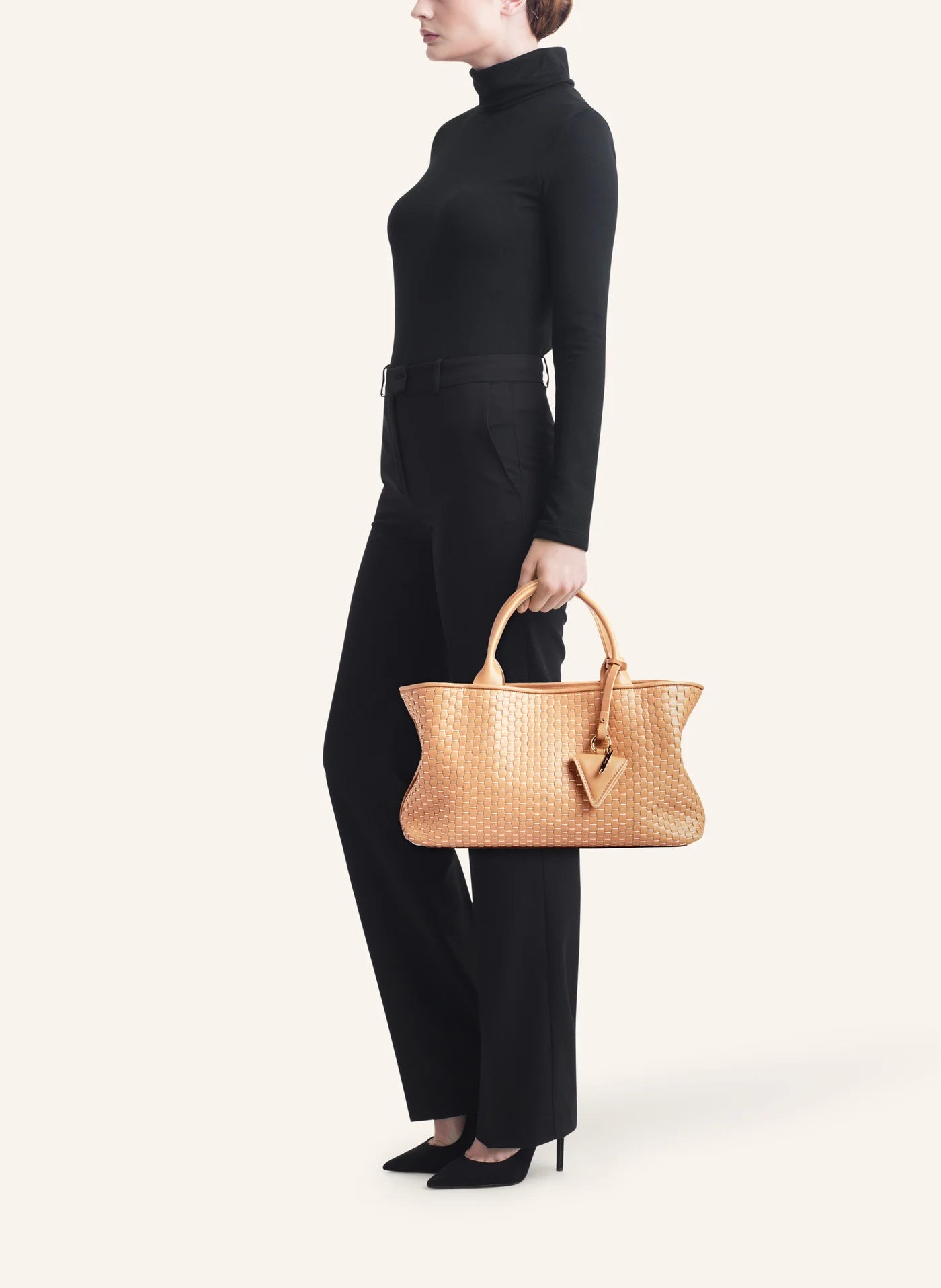 The '60' Small tote bag is the most compact version of the iconic 60 tote, offering the same artisanal quality in a more lightweight and versatile design. Woven using 18th-century wooden treadle looms, this structured yet flexible tote is perfect for daily essentials without compromising style. Its comfortable leather handles allow easy carrying, even over coats. A secure closure and expertly finished details make it the ideal companion for refined everyday wear. Also available in Medium and Large versions.
