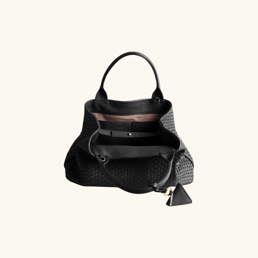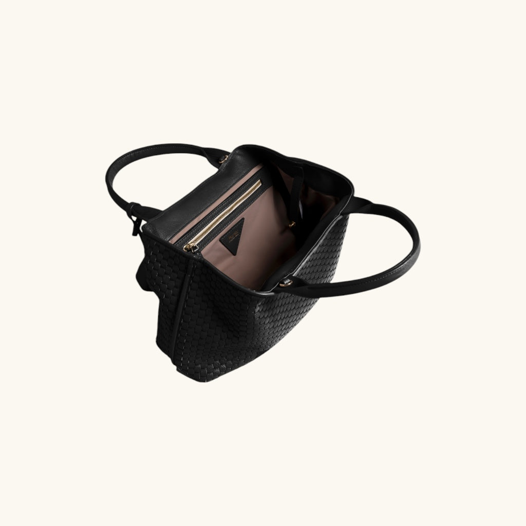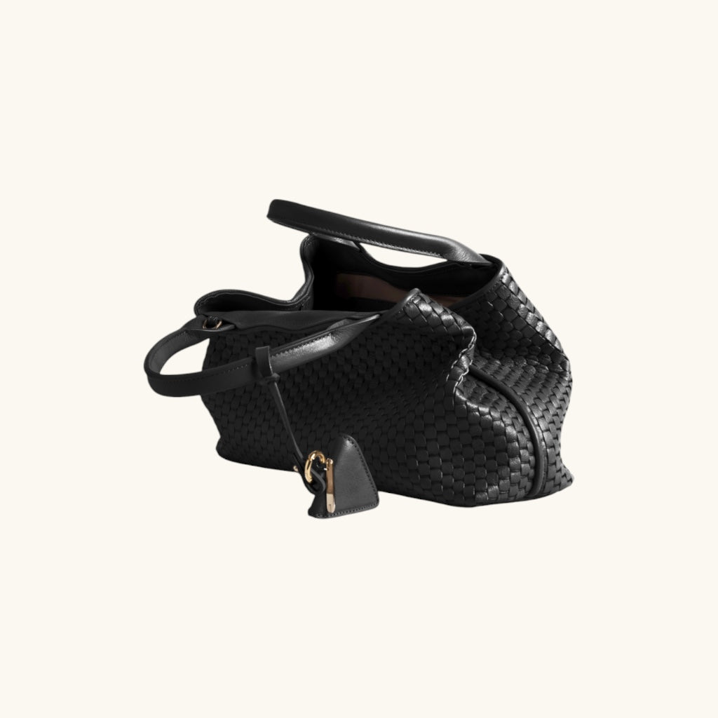 The '60' Small tote bag is the most compact version of the iconic 60 tote, offering the same artisanal quality in a more lightweight and versatile design. Woven using 18th-century wooden treadle looms, this structured yet flexible tote is perfect for daily essentials without compromising style. Its comfortable leather handles allow easy carrying, even over coats. A secure closure and expertly finished details make it the ideal companion for refined everyday wear. Also available in Medium and Large versions.