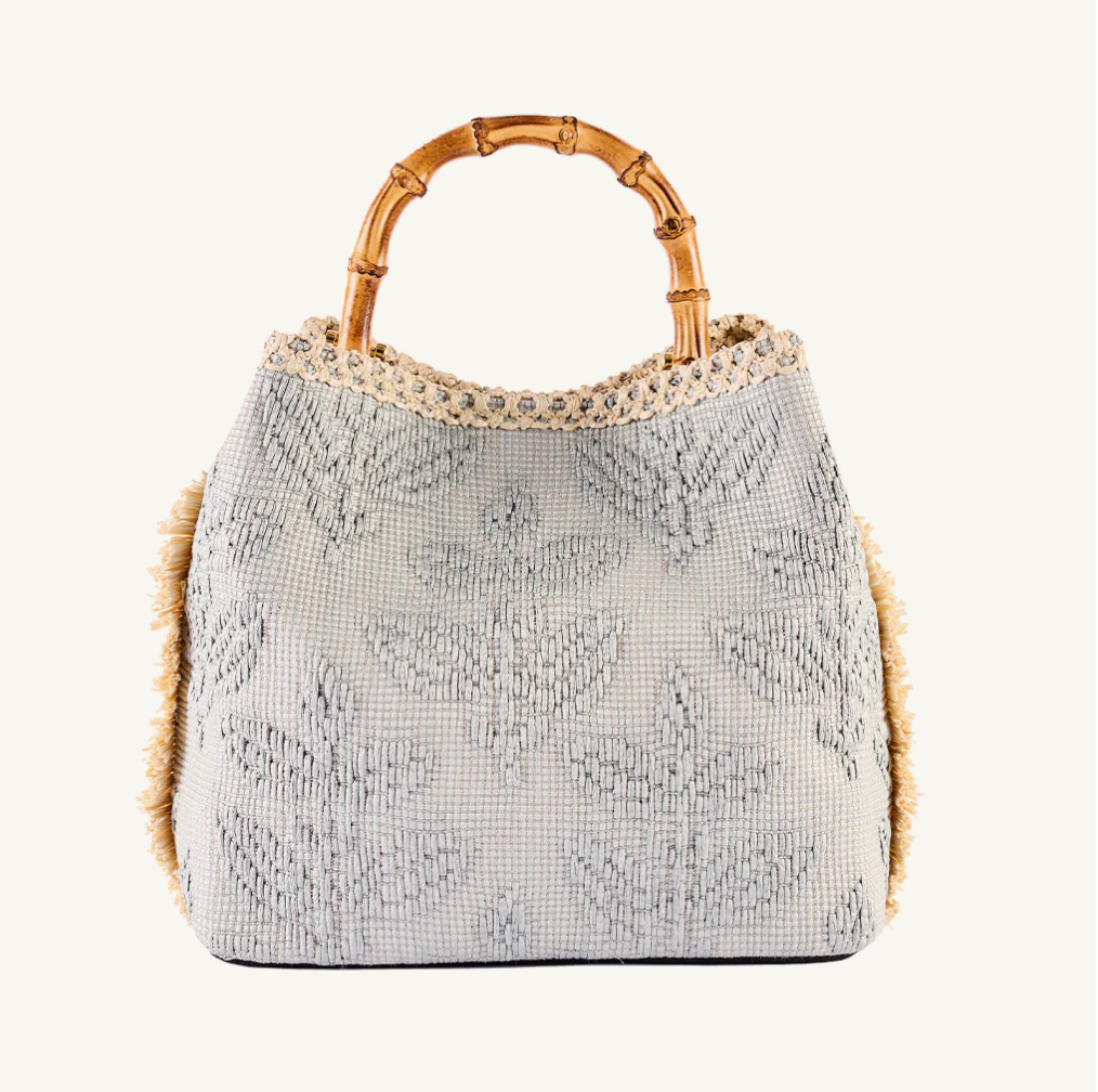 Coral is a top handle Italian bag crafted by ViaMailBag in Empoli. Made of raffia, it is a sleek style that can take you through the day with ease. Coral features a bamboo handle but also a detachable shoulder strap for hands-free convenience. The bag boasts a spacious compartment equipped with a small zipper pocket to keep your valuables in place.