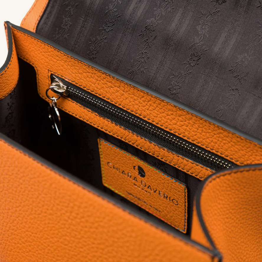 Milano Brera Rainbow is a top handle bag crafted by Chiara Daverio in Milan, Lombardy. Milano Brera Rainbow boasts a sturdy shape and practical design with 2 slip pockets. Its lightweight structure is thanks to innovative leather tanning and production techniques. Hold comfortably by the handle or attach the adjustable strap for a totally different look!