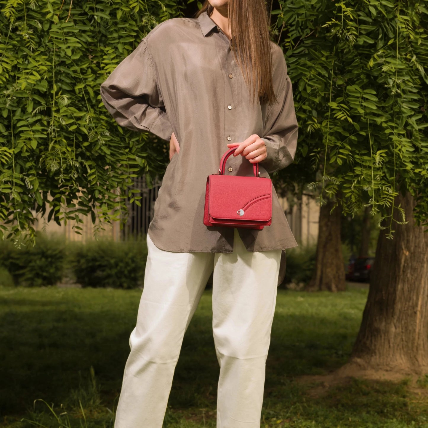 Mini Lady Rainbow is a top handle bag crafted by Chiara Daverio in Milan, Lombardy. The perfect miniature bag, Mini Lady Rainbow boasts a sturdy shape and practical design with 2 slip pockets. Its lightweight structure is thanks to innovative leather tanning and production techniques. Hold comfortably by the handle or attach the adjustable strap for a totally different look!