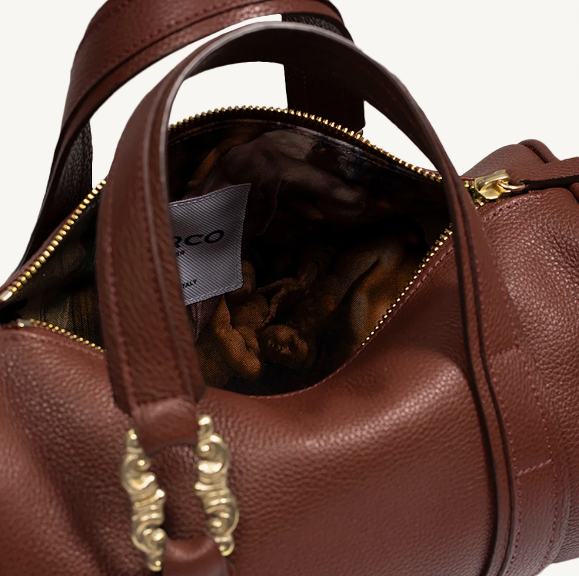 The ATENA bag is a soft structured mini duffle bag. The relaxed design makes it the perfect complement to both refined and casual outfits.