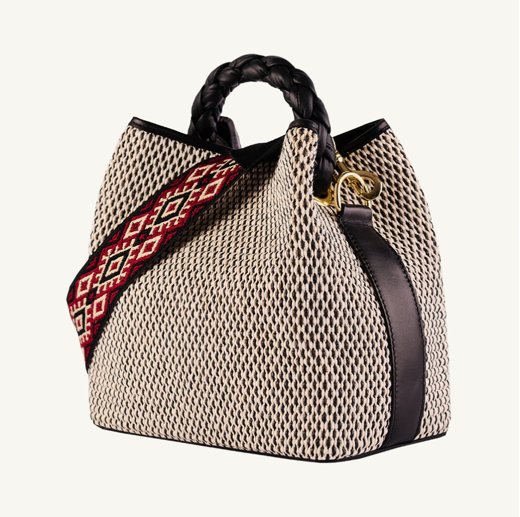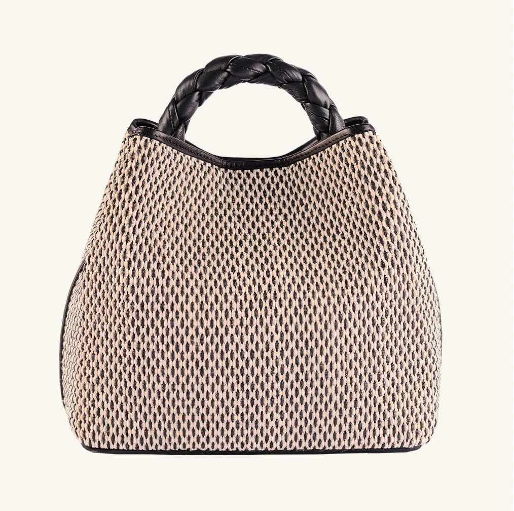 Coral is a top handle Italian bag crafted by ViaMailBag in Empoli. Made of raffia, it is a sleek style that can take you through the day with ease. Coral features a leather handle but also a detachable shoulder strap for hands-free convenience. The bag boasts a spacious compartment equipped with a small zipper pocket to keep your valuables in place.