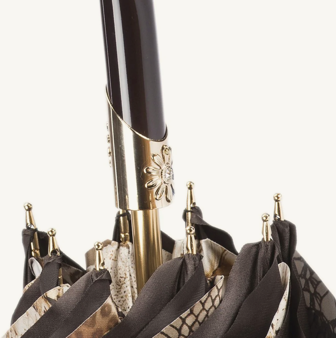 Crespo umbrella can make you wish for a rainy day. The WOW effect is granted when you will open this umbrella. Designed and made in Mantova by Pasotti, experts in the luxury umbrella section. Let's make your rainy day more colored thanks to such a unique masterpiece.