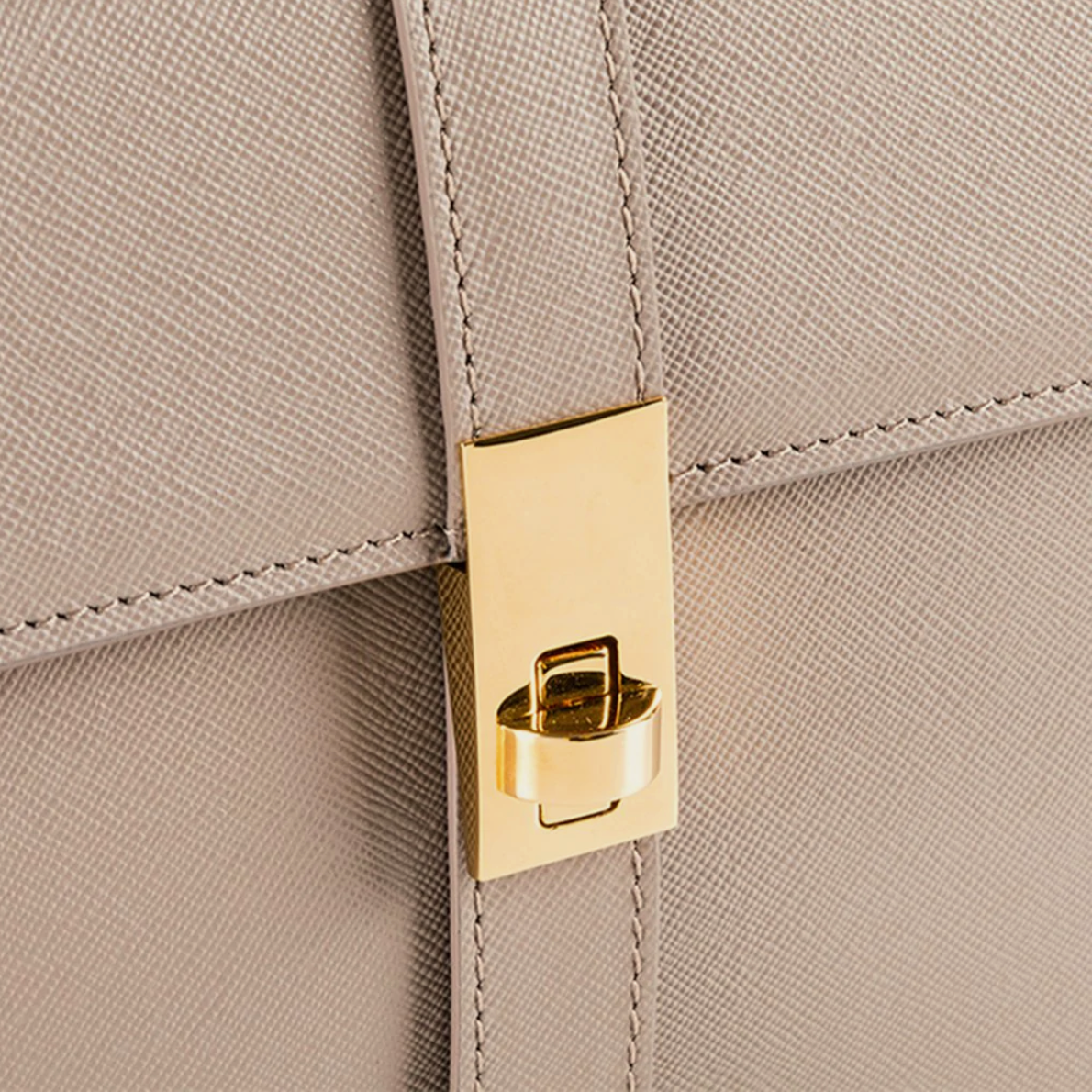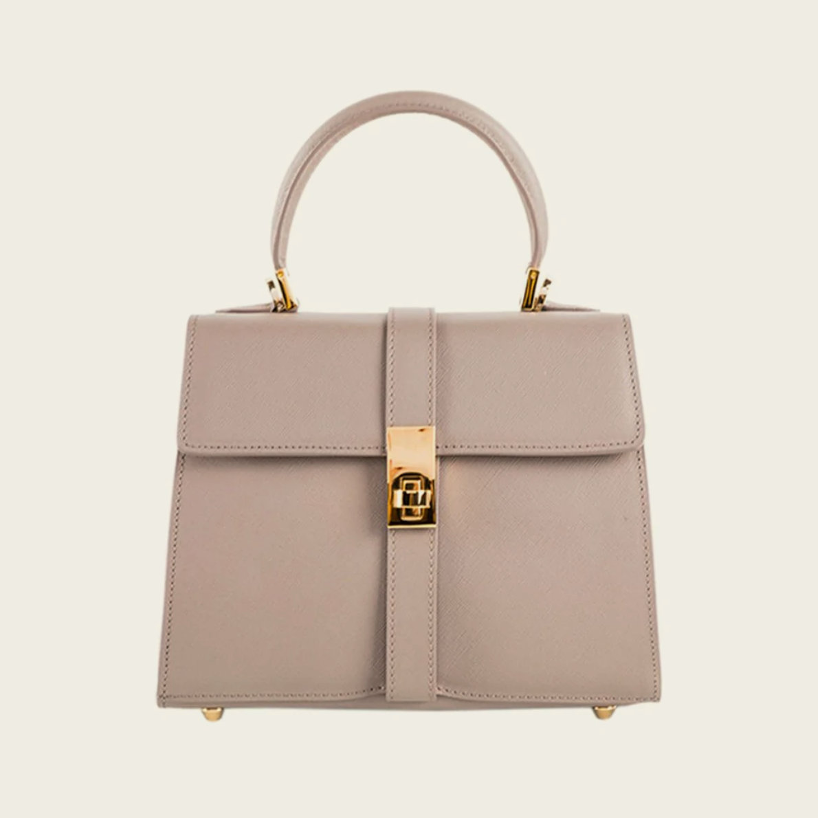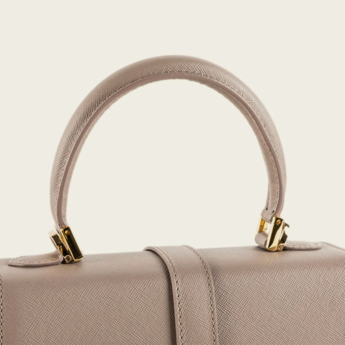 Elvira is a bag crafted in the workshop of Fontanelli in San Casciano Val di Pesa near Florence, Tuscany. Made of the finest Saffiano leather, Elvira can be worn either as a cross-body or by hand. Thanks to its elegant design with gold-toned hardware, this top handle bag promises to make a major entrance wherever you bring her.