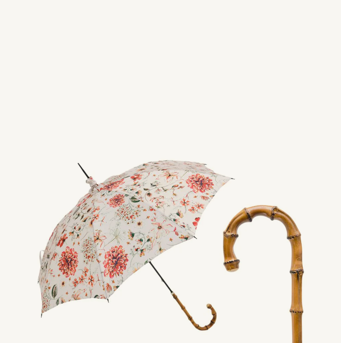 Geranio is a parasol designed and made in Mantova by Pasotti. This unique masterpiece is the quick style elevation your wardrobe needs, powering up your look in an instant. You'll find yourself wishing for a rainy day.