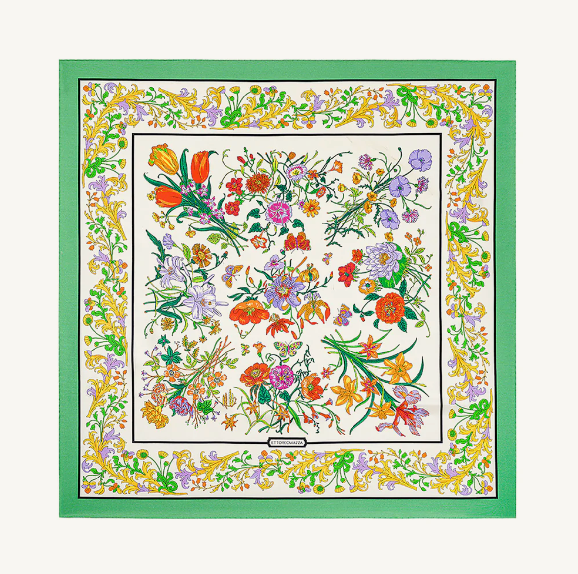 The wonderful Ettore Cavazza scarves are handmade by specialized Mastri Setai, strictly in Italy and in the province of Como. The finishes are detailed, the bright colors and the full-bodied silk are synonymous with a quality product and the Made in Italy textile tradition