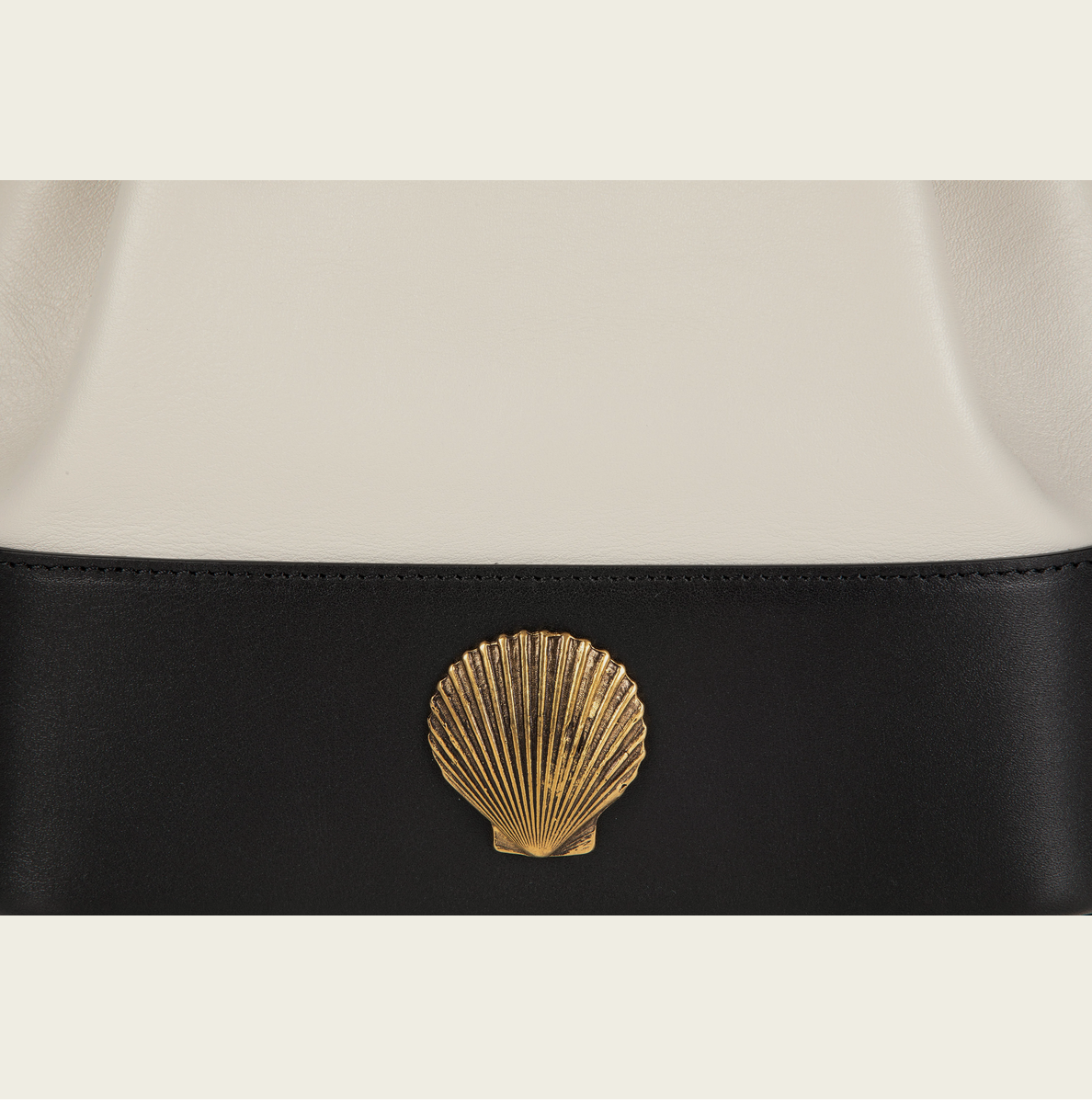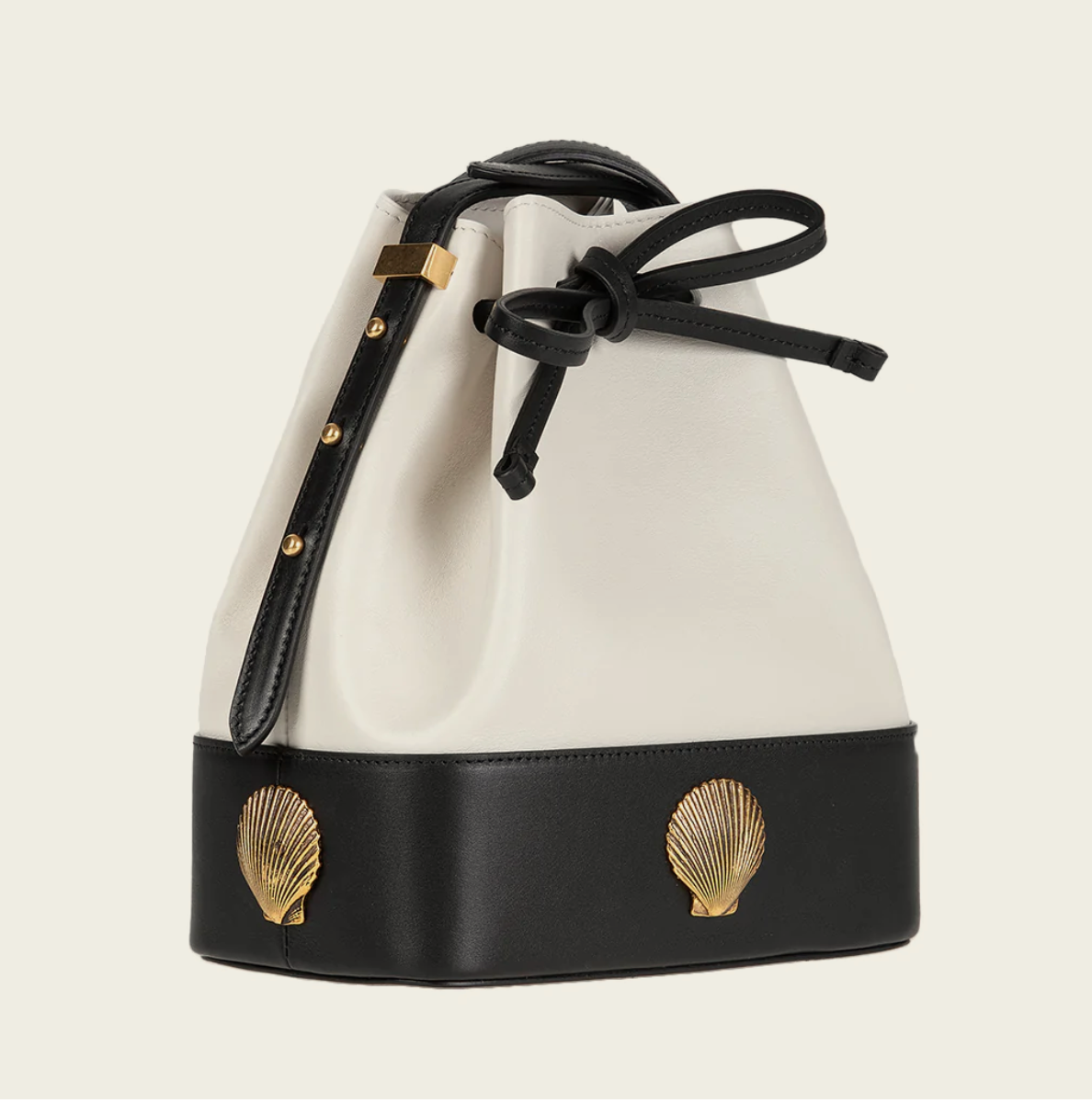 Lalla B is a bucket bag composed of calfskin made by Ledeff.