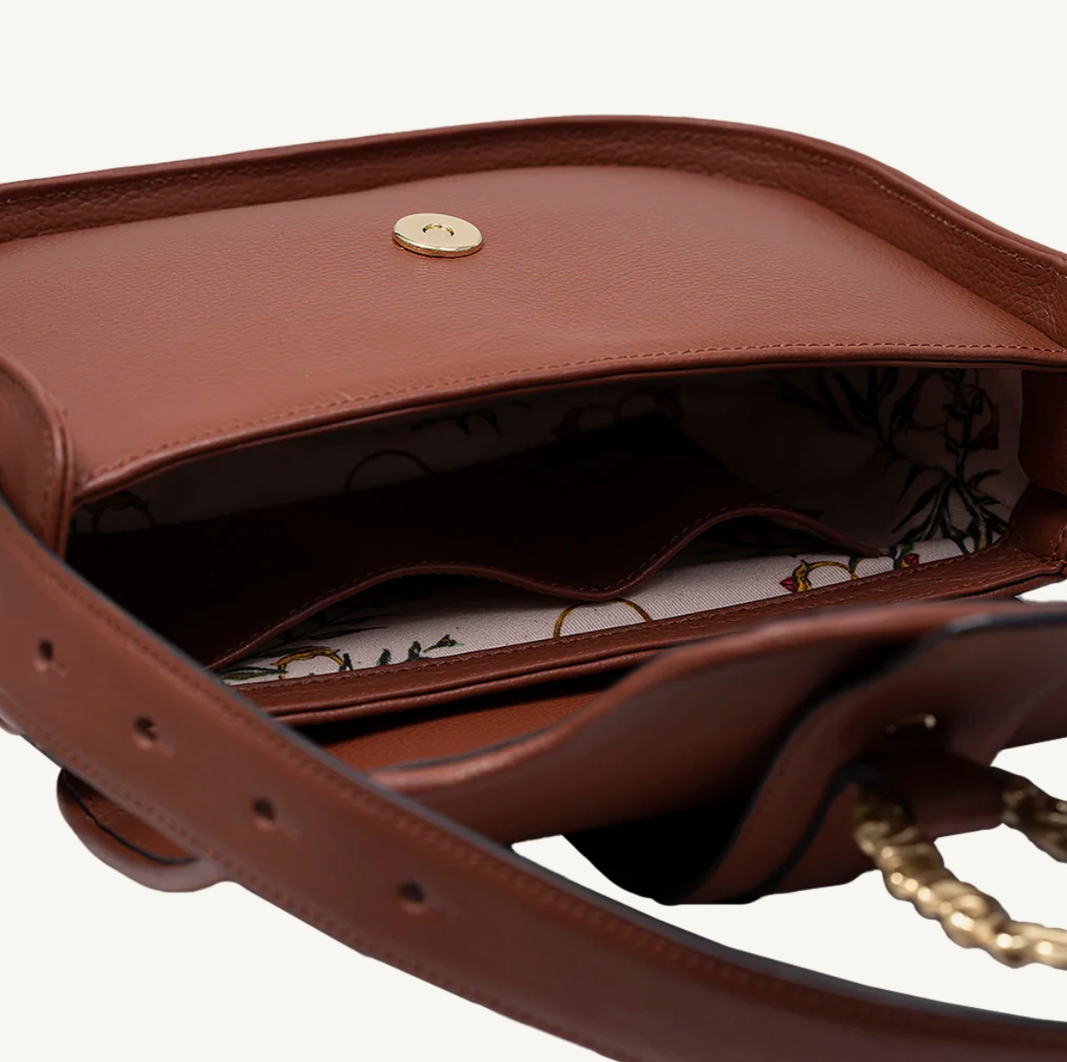 The adjustable strap allows the bag to be carried both over the shoulder or crossbody.