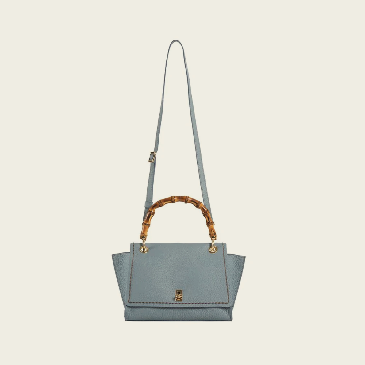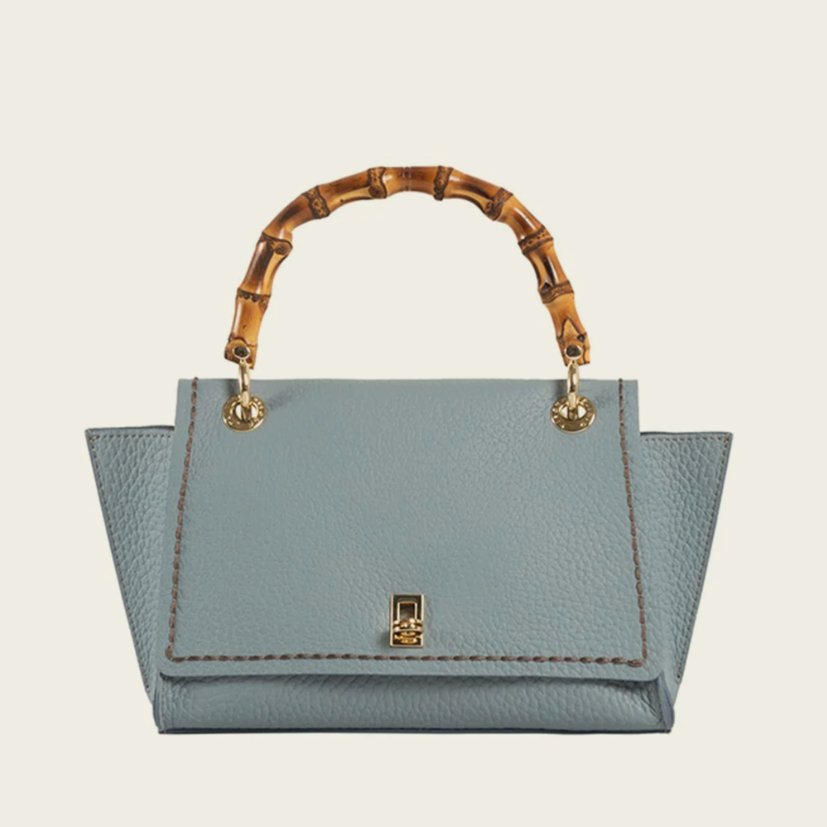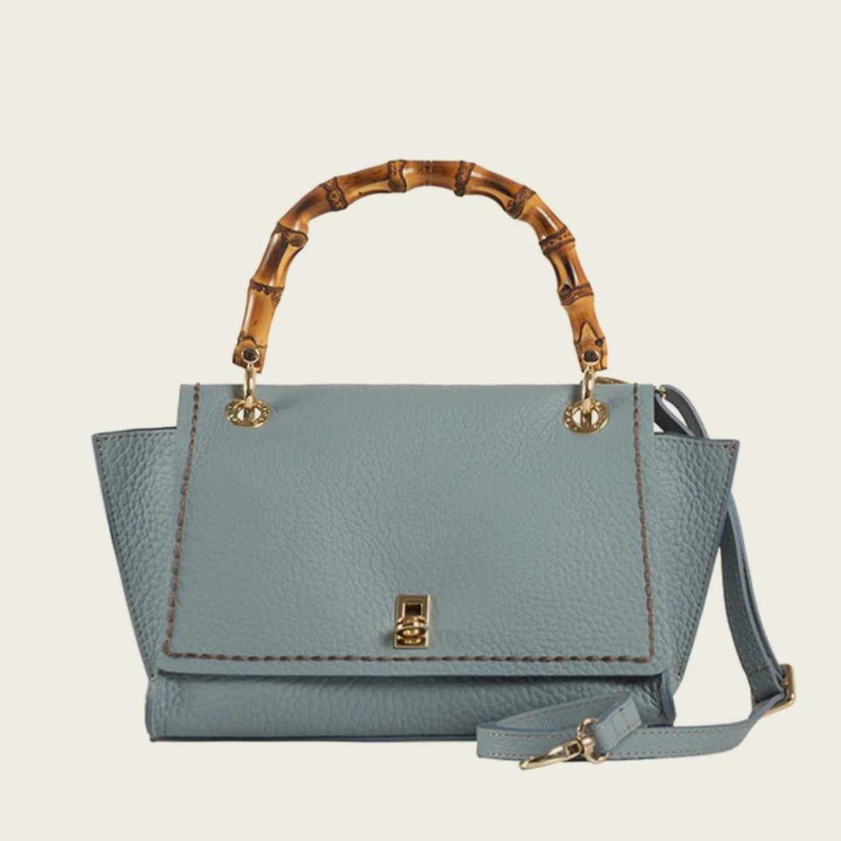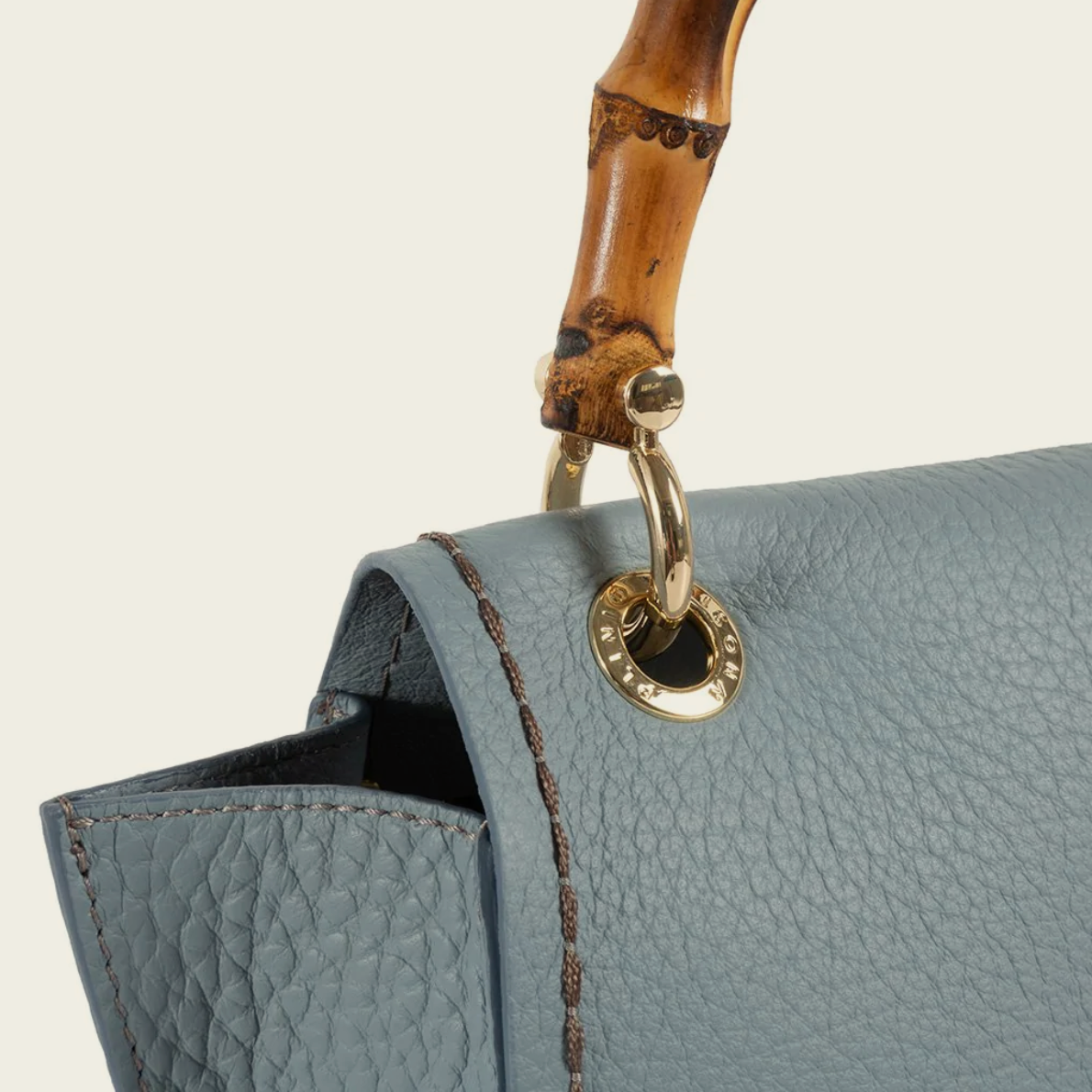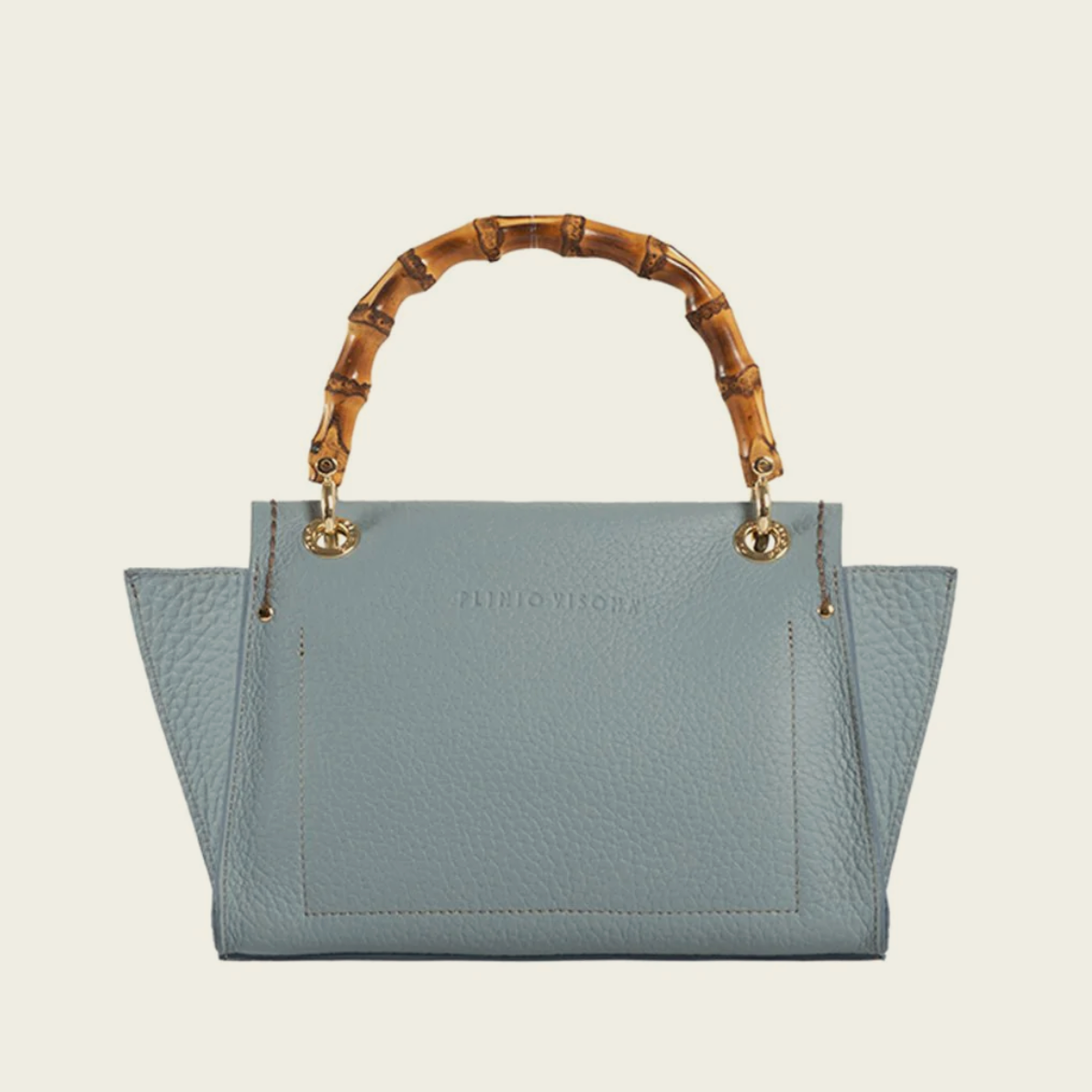 Posillipo Gaiola is a single handle handbag crafted by Plinio Visonà in Vicenza. Made of soft full grain leather, it has a bamboo handle and can be worn both as a handbag and as a shoulder thanks to the detachable shoulder strap.