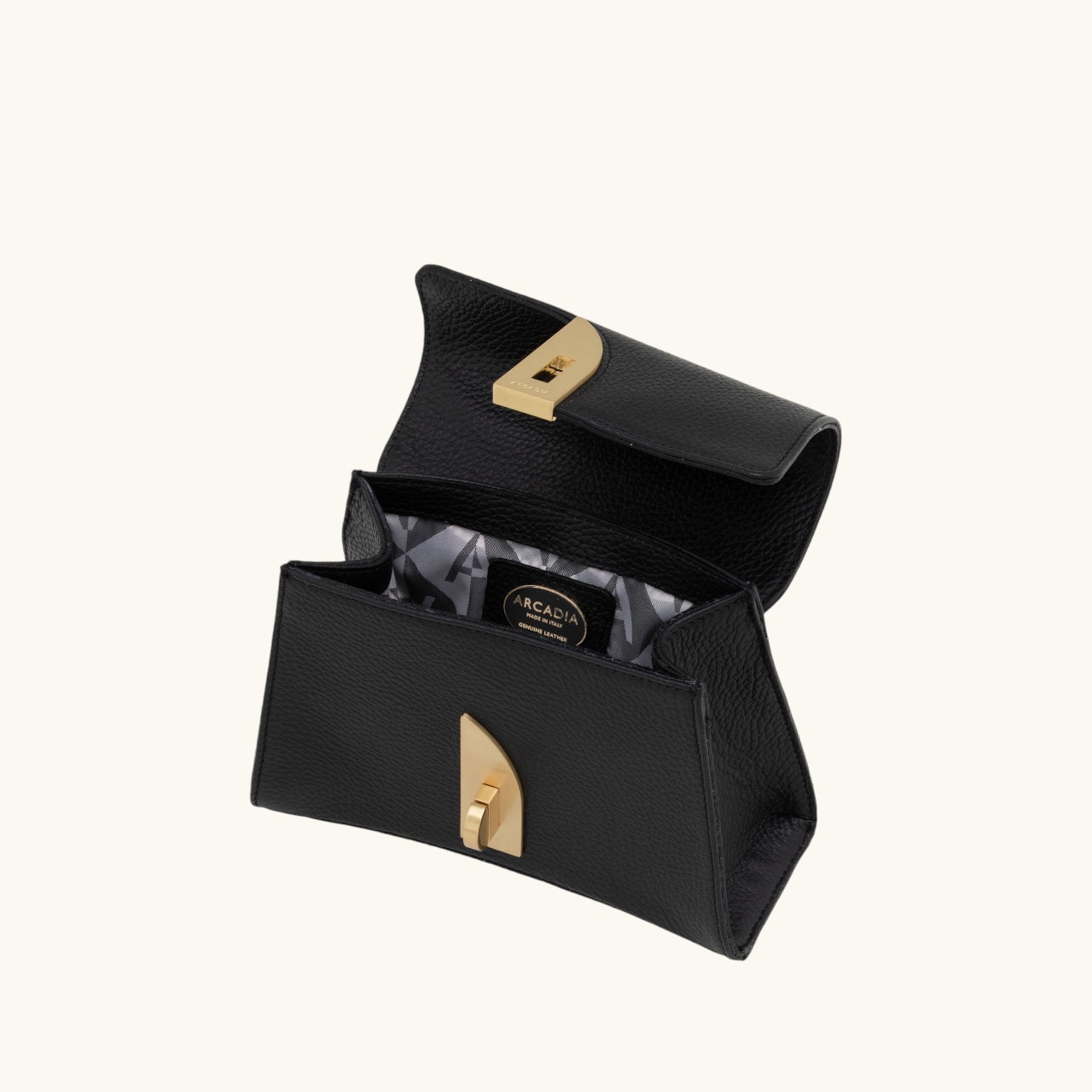 The Arcadia Arco is a mini cross-bodies. With its unconventional design, it is a sculptural shape with a flexible geometry.