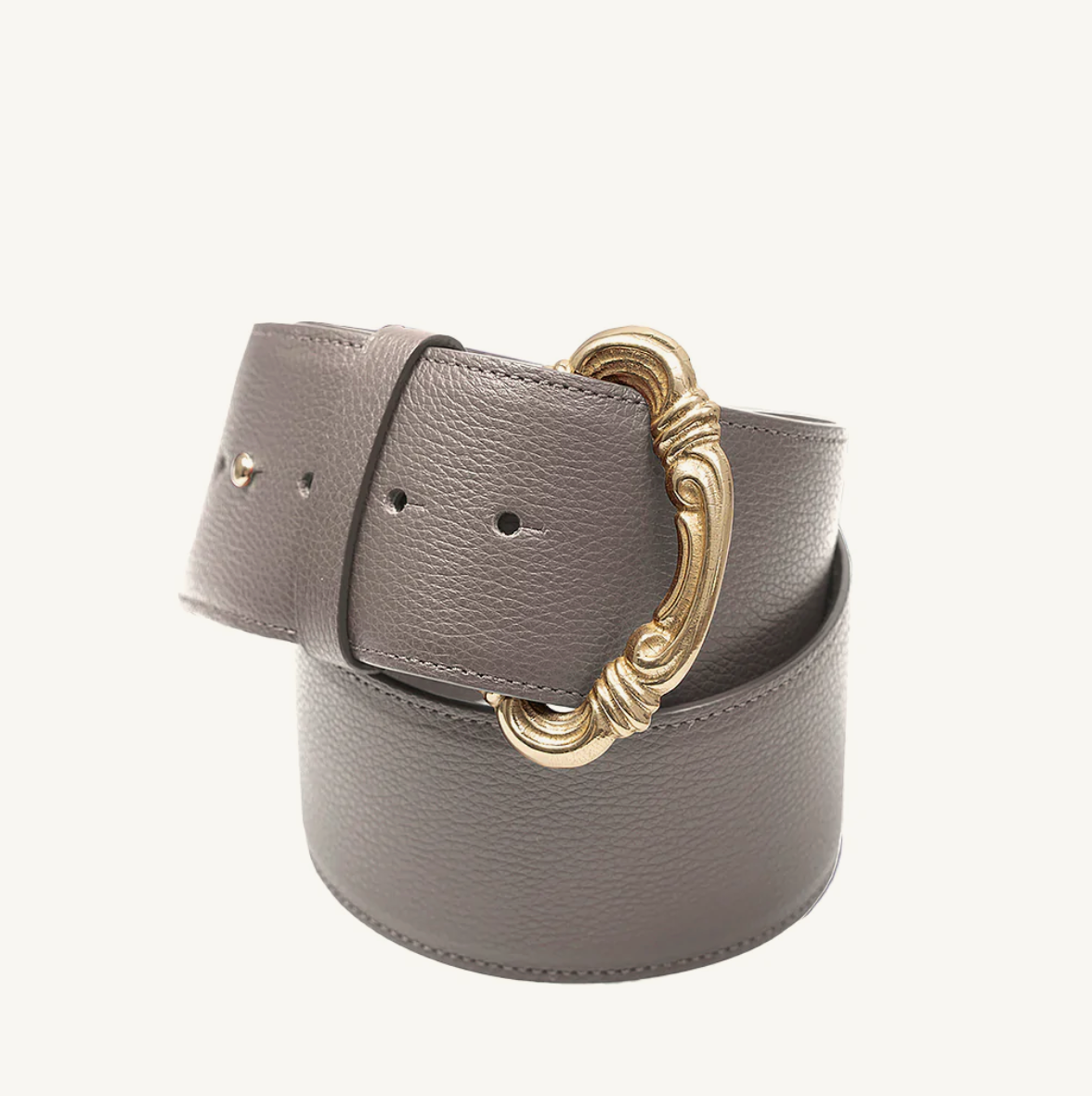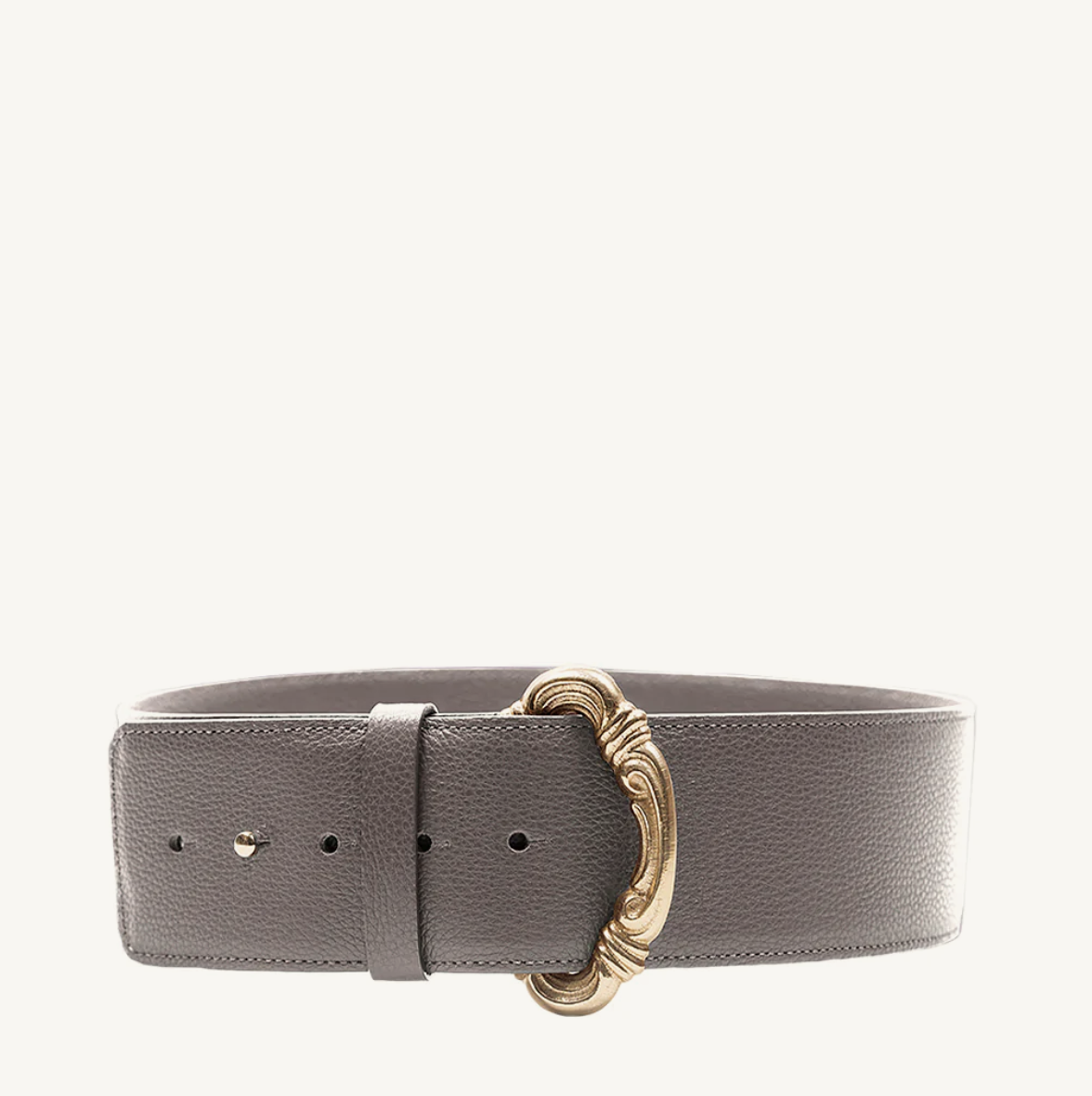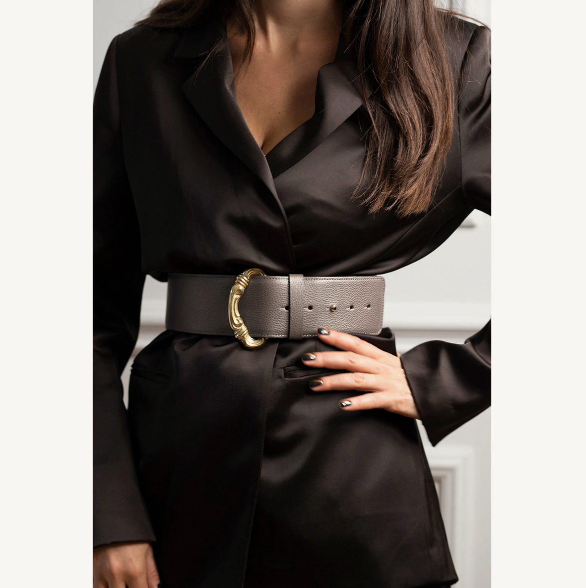 The MARCO Atelier belt has a bold design, crafted in grainy calfskin it features the iconic brass buckle. A refined style, its wide silhouette will elegantly highlight the waist and enhance a skirt, dress or jacket.