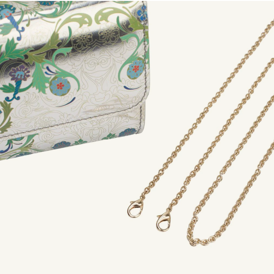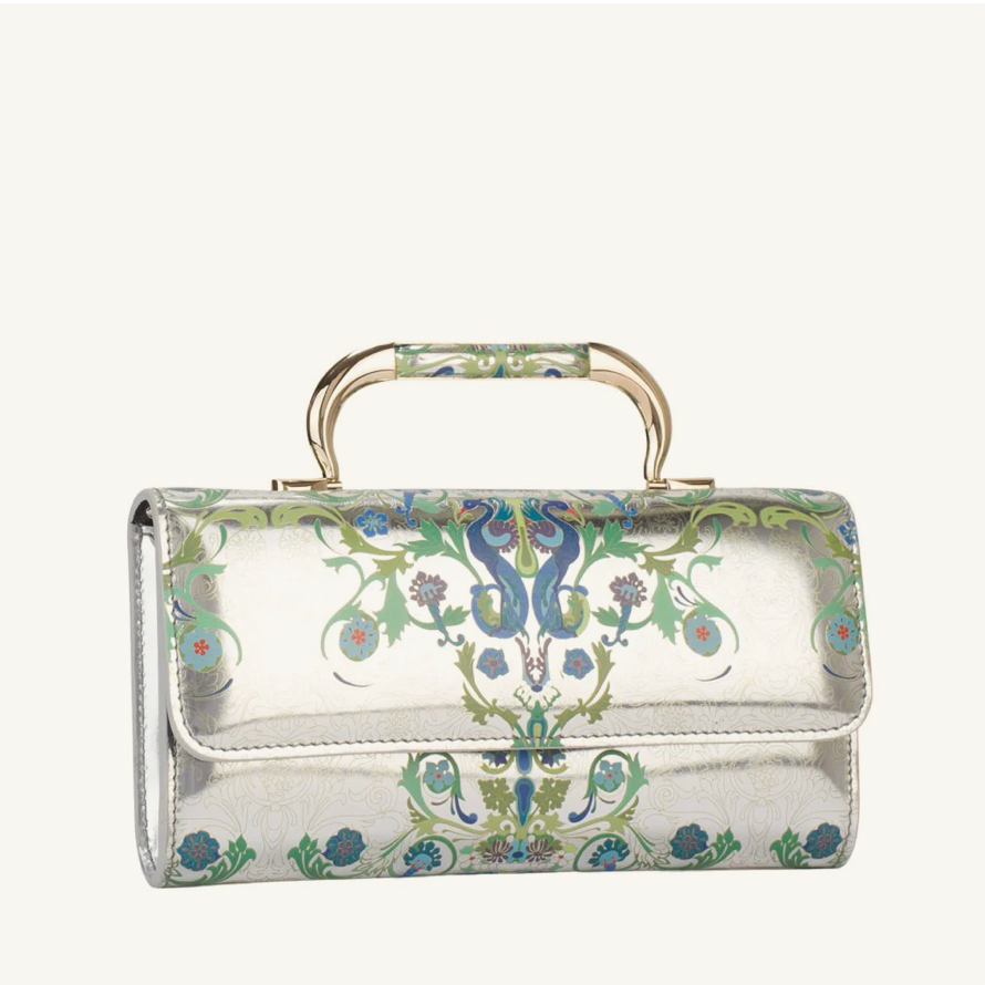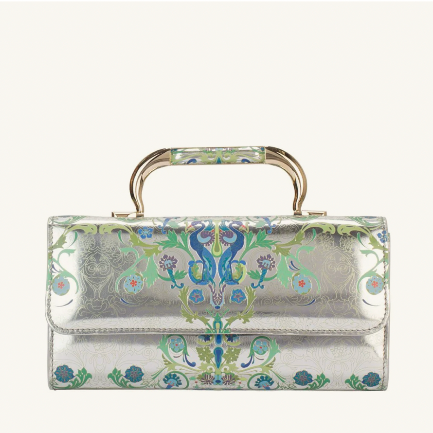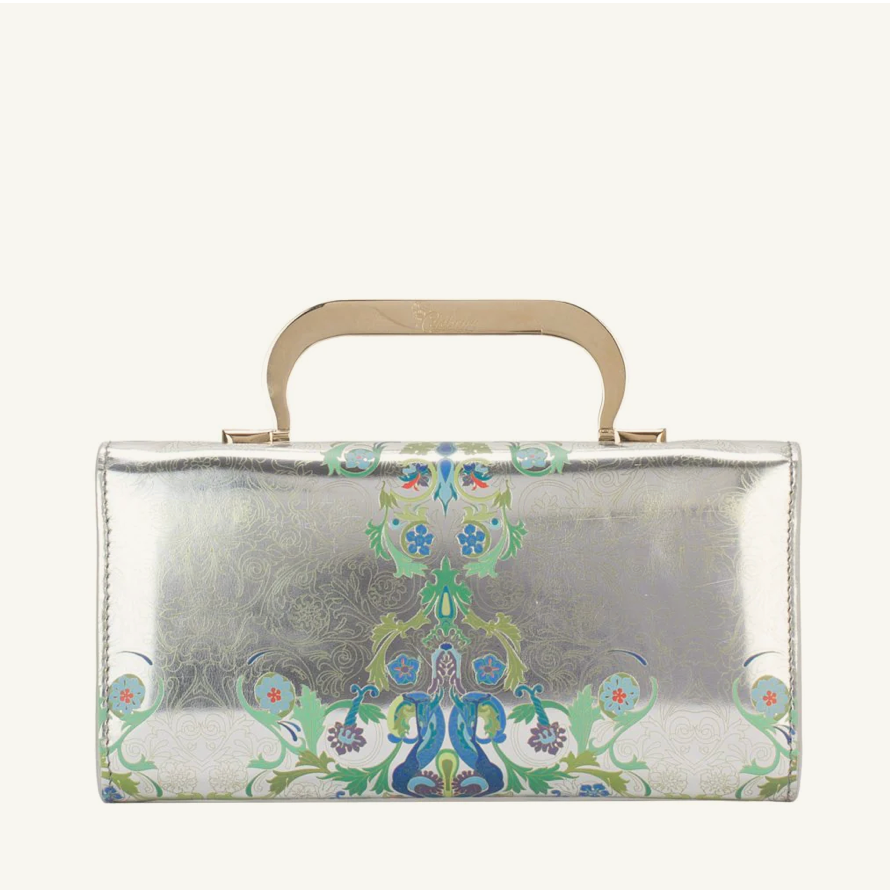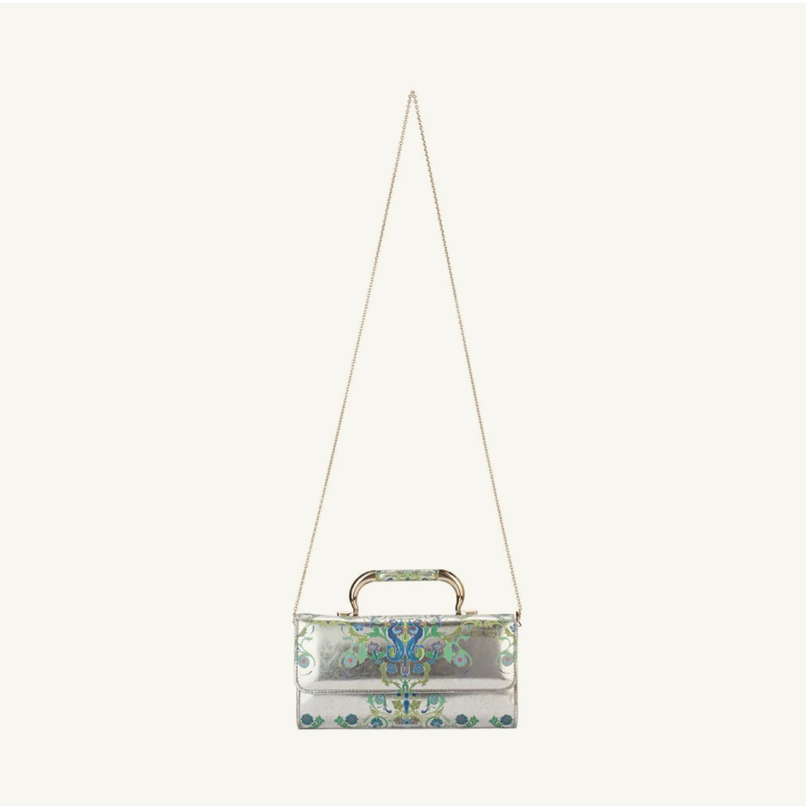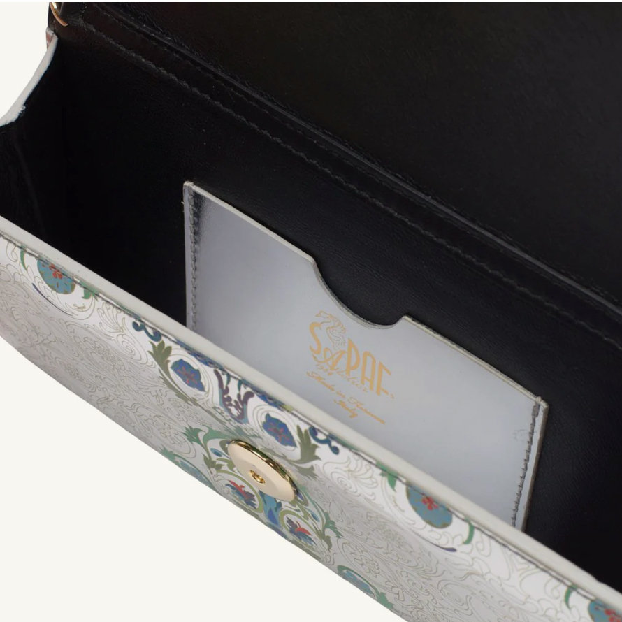 Celebrity Long is a top handle bag crafted by Sapaf Atelier in Florence, Tuscany. A stunning display of Italian craftsmanship, this bag features an intricate multicolor floral pattern and rose gold-toned hardware. For a hands-free option, simply attach the chain strap and sling across your shoulder. Perfect for either a casual lunch or fancy night out, Celebrity Long will definitely steal the show no matter the occasion!
