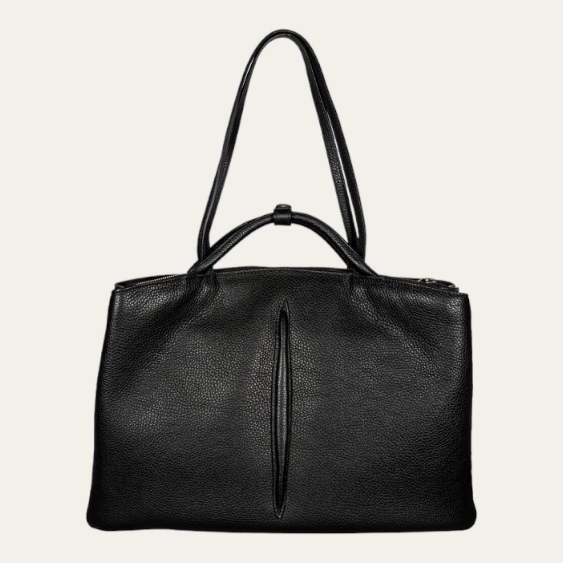 Eclittica is indeed an urban tote featuring a central compartment securely closed by a metal zip, two side compartments, an interior pocket with flap and an open pocket, and an additional closure with a leather tab and twin snap hook. With six metal protective feet on the bottom, and an ecological lining made of Apple. ECLITTICA is a perfect balance between form and function, designed to accompany you on your daily journey. Crafted from high-quality leather, this tote is durable and stylish.
