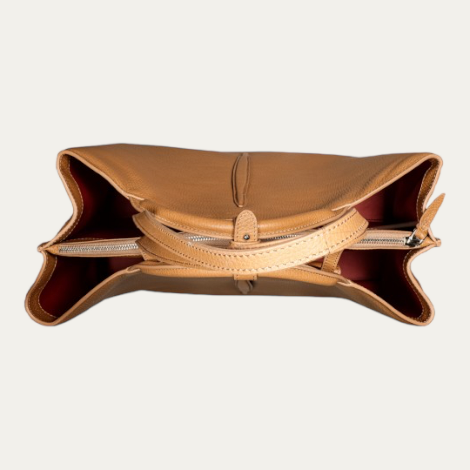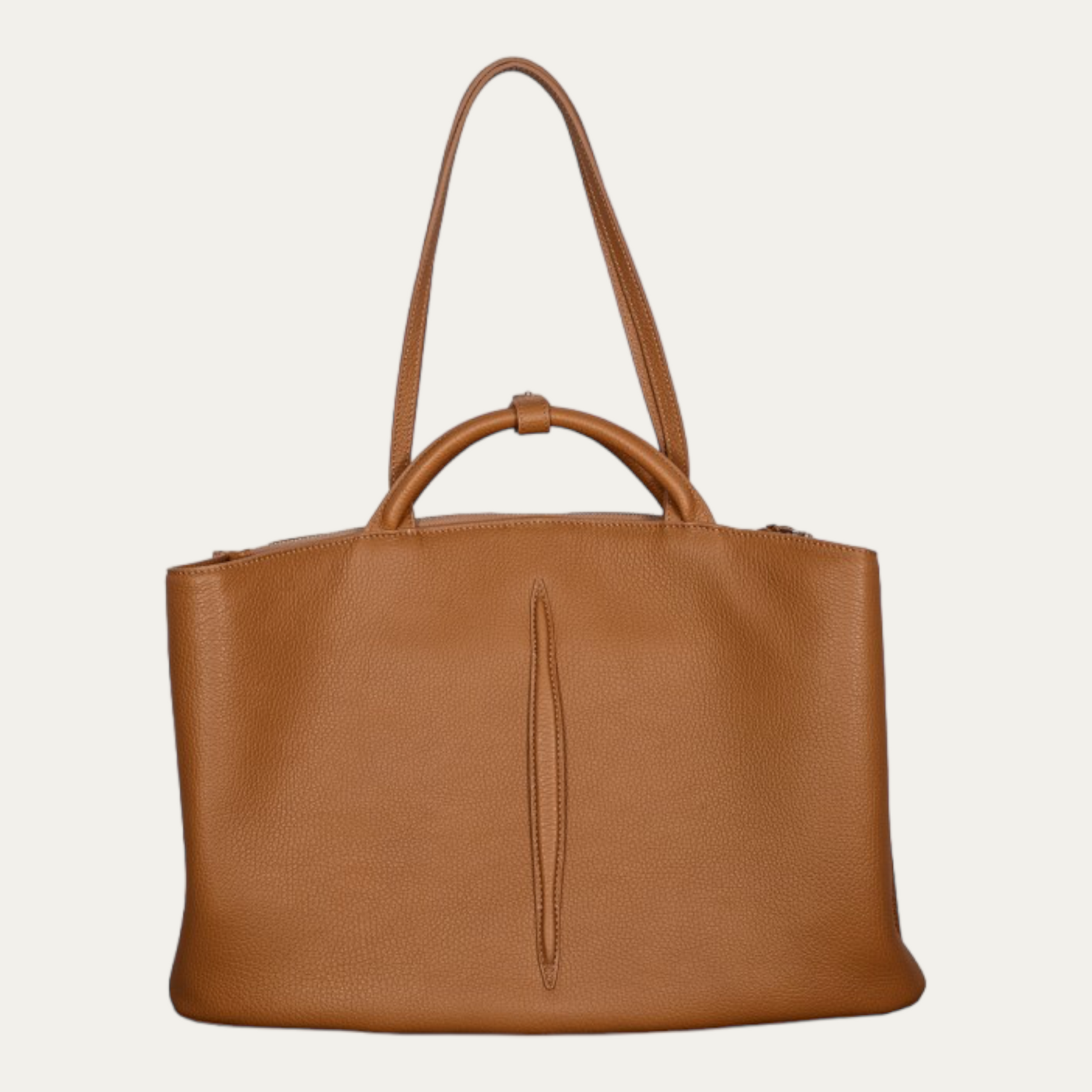 Eclittica is indeed an urban tote featuring a central compartment securely closed by a metal zip, two side compartments, an interior pocket with flap and an open pocket, and an additional closure with a leather tab and twin snap hook. With six metal protective feet on the bottom, and an ecological lining made of Apple. ECLITTICA is a perfect balance between form and function, designed to accompany you on your daily journey. Crafted from high-quality leather, this tote is durable and stylish.