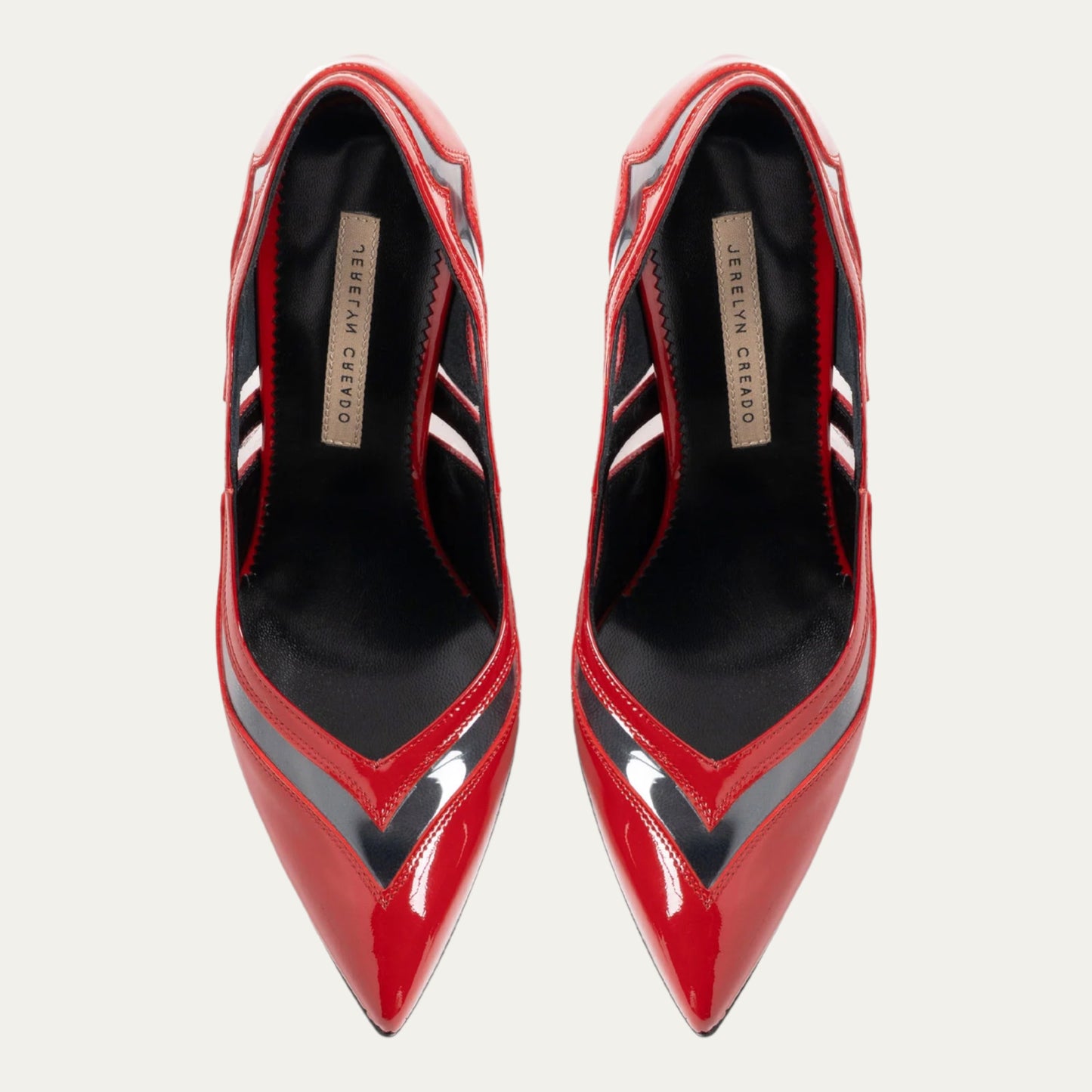 The red Emily women's shoes have a 9.5-cm stiletto heel.