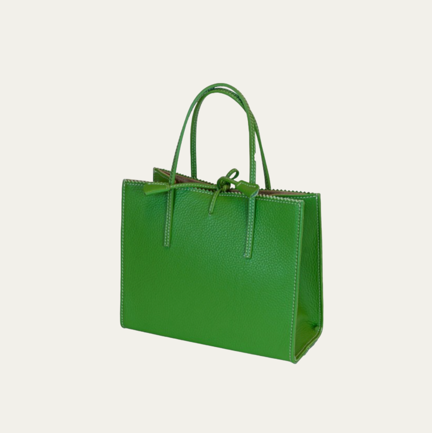 This stunning lace bow tote handbag from luxury Italian designer Buti is crafted from eco-friendly vegetable tanned leather at the centre of Italy's renowned leather production region, located between Pisa, Lucca, and Florence in Tuscany. Showcasing a decorative edge, zig zag stitching, and lace ties with two top leather handles, the lined interior features a zip compartment with a matching leather zip purse and a detachable leather shoulder strap. Sleek, stylish, and versatile, this beautiful bag is available in a variety of colors and sizes, making it the perfect addition to your day-to-day ensemble.