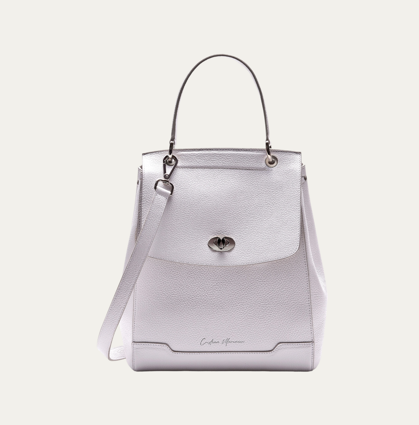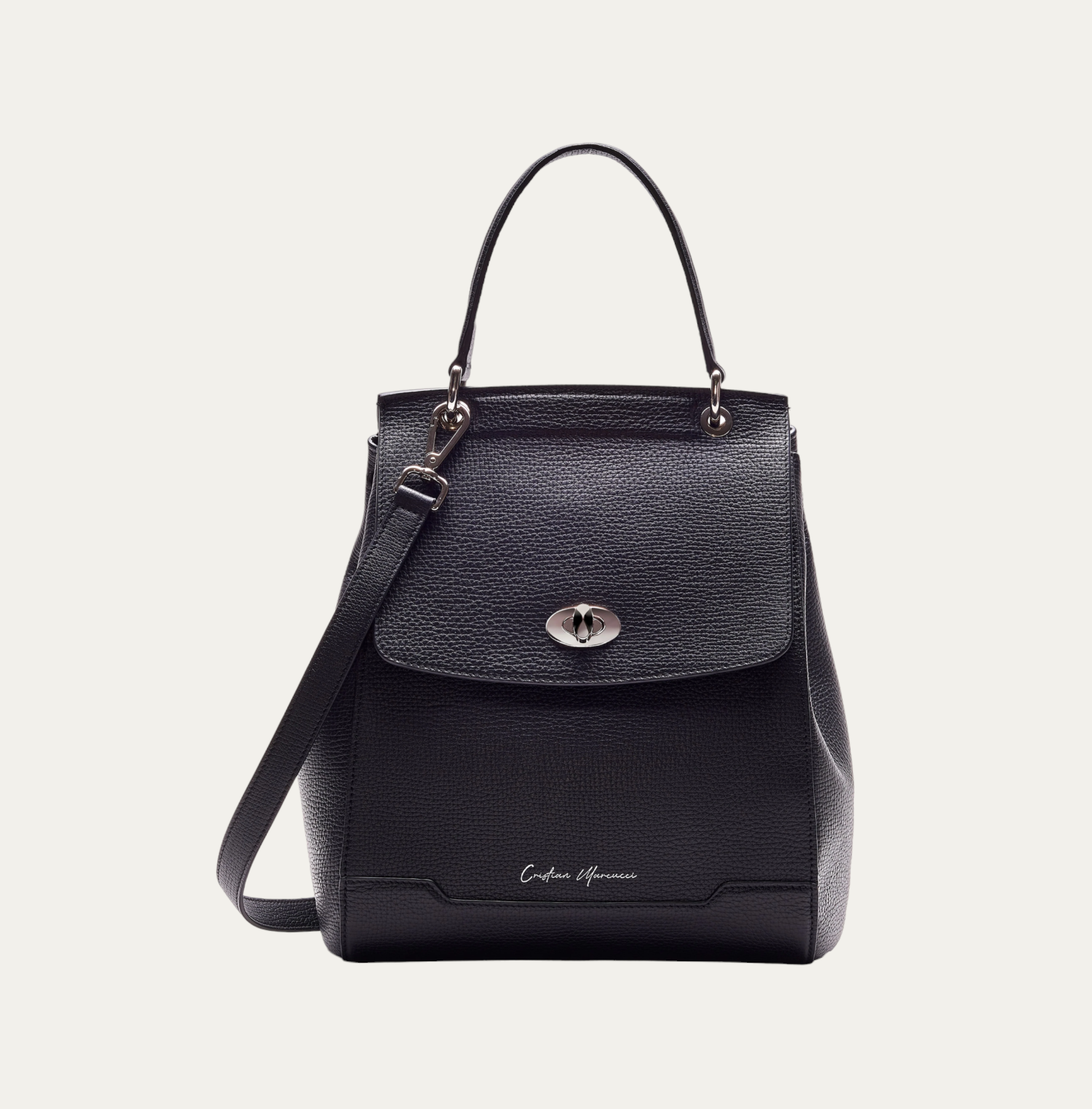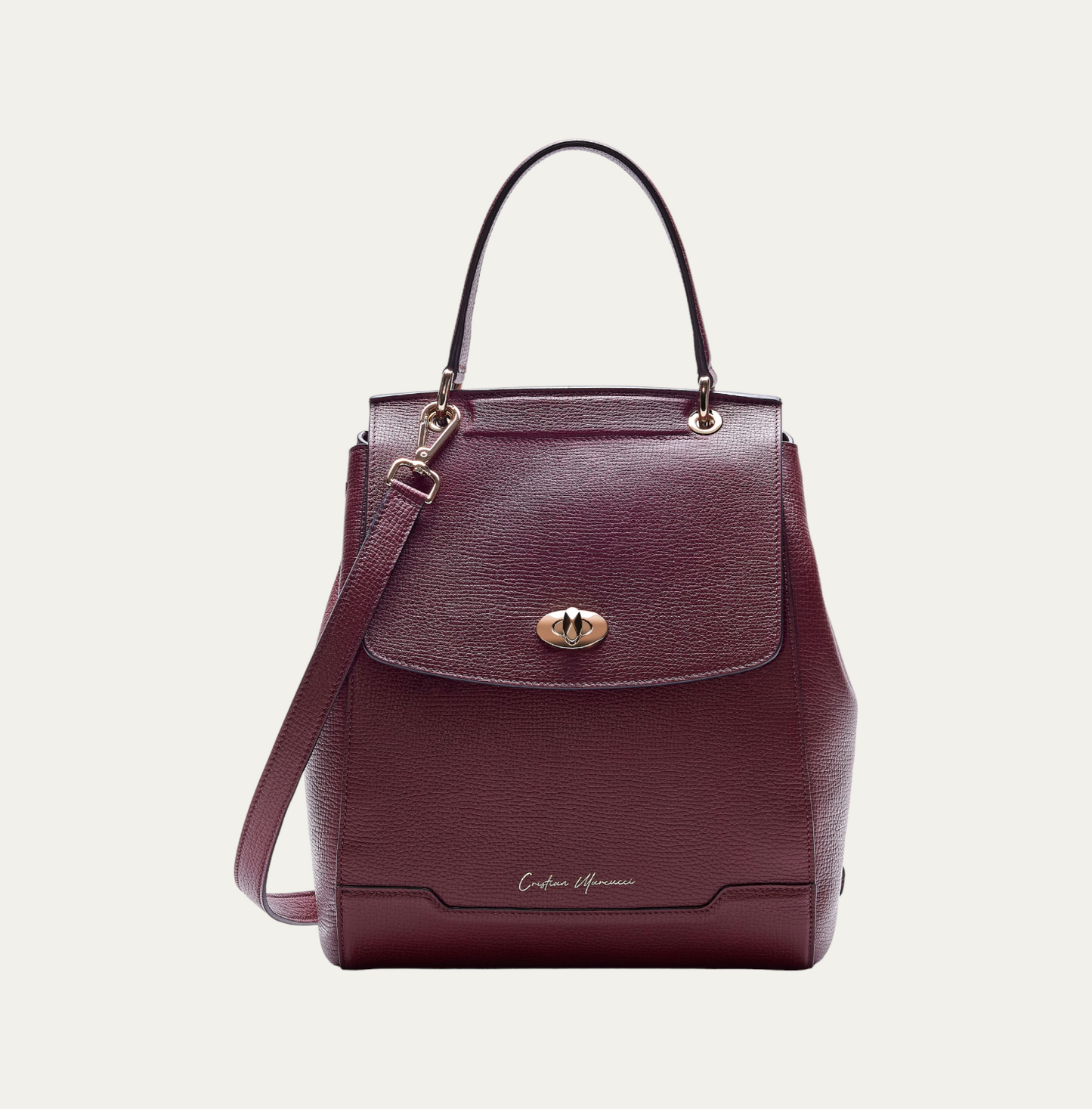 Backpack, bag and crossbody, Giulietta is 3 in 1, elegant, versatile and practical. Made of fine garnet calfskin with fabric interior and suede underflap, it has two internal pockets, one of which is zipped.