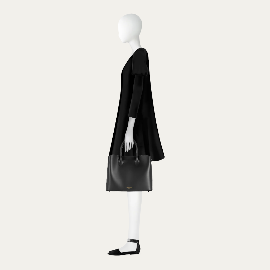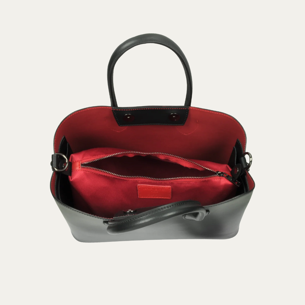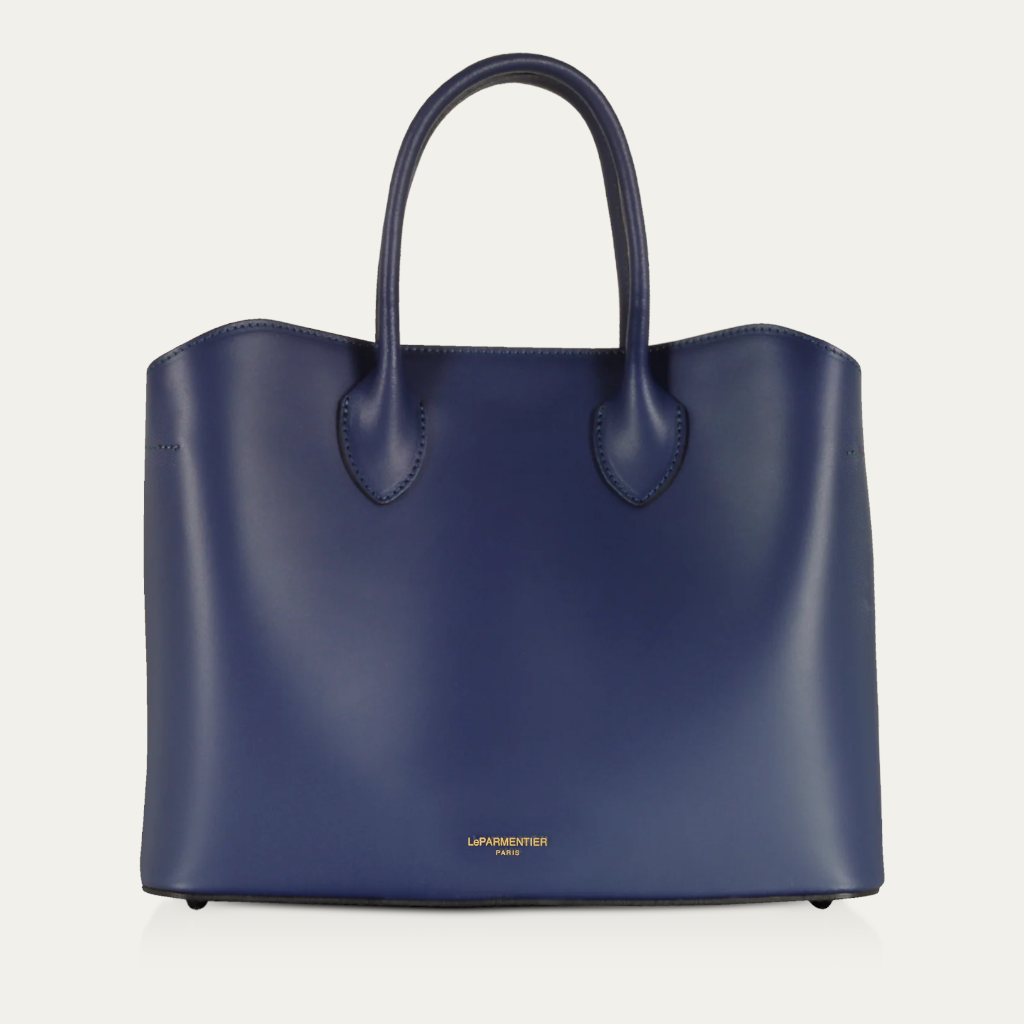 Jackie Leather Tote Bag crafted in neutral hued smooth genuine Italian calf leather, has simple design elements that create a refined aesthetic sure to compliment your wardrobe. Featuring double rolled handles, snap magnetic closure, contrast interior, center detachable zip pouch, flat bottom for stability with protective feet, and gunmetal hardware. Made in Italy.