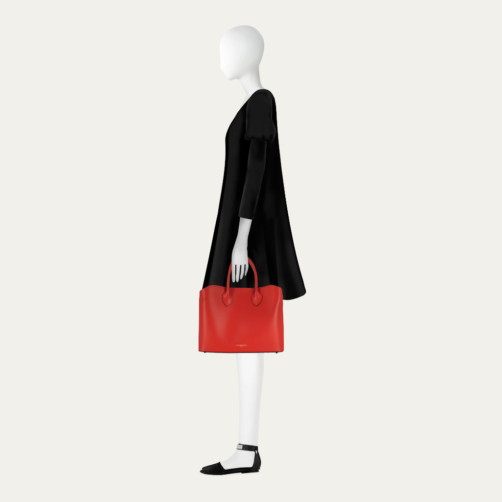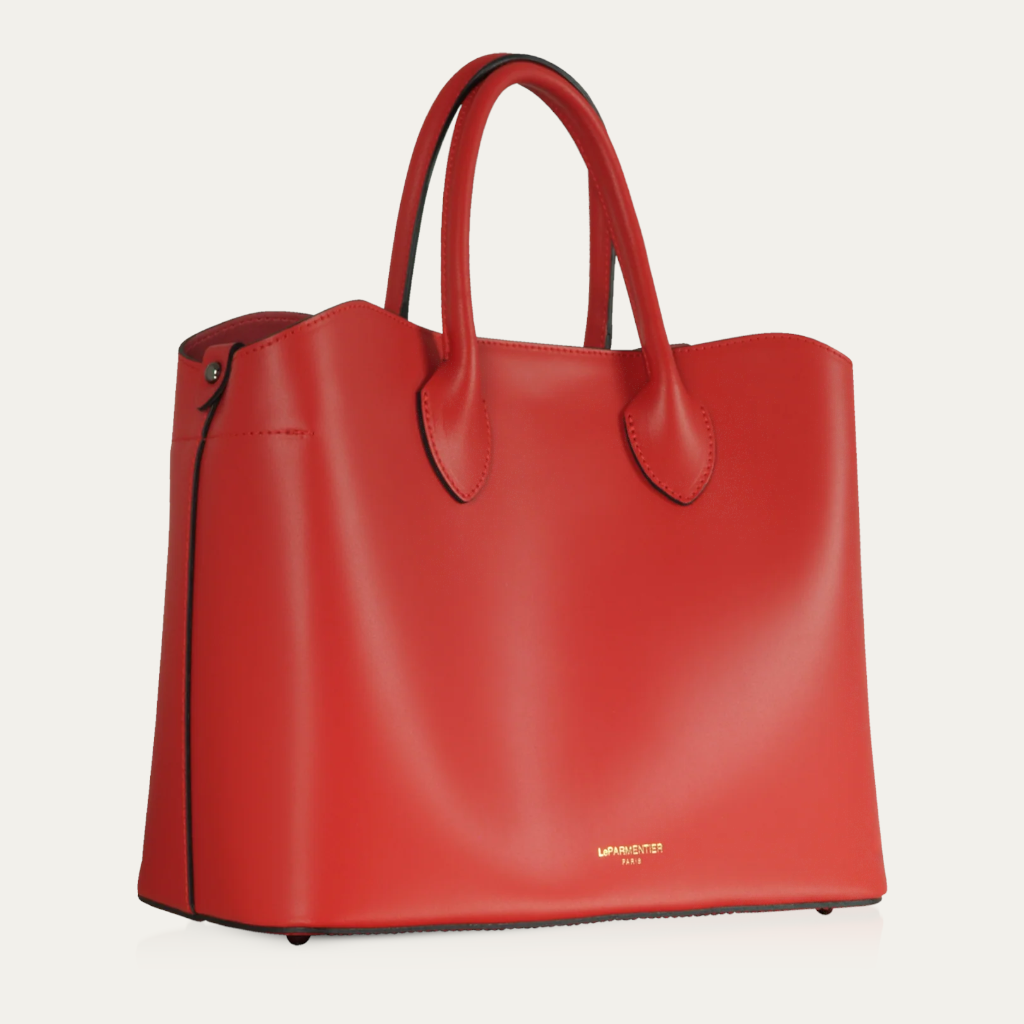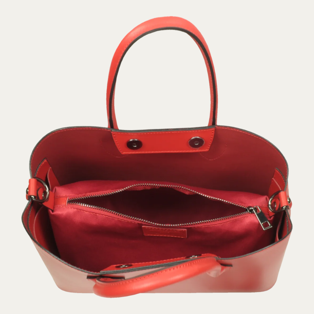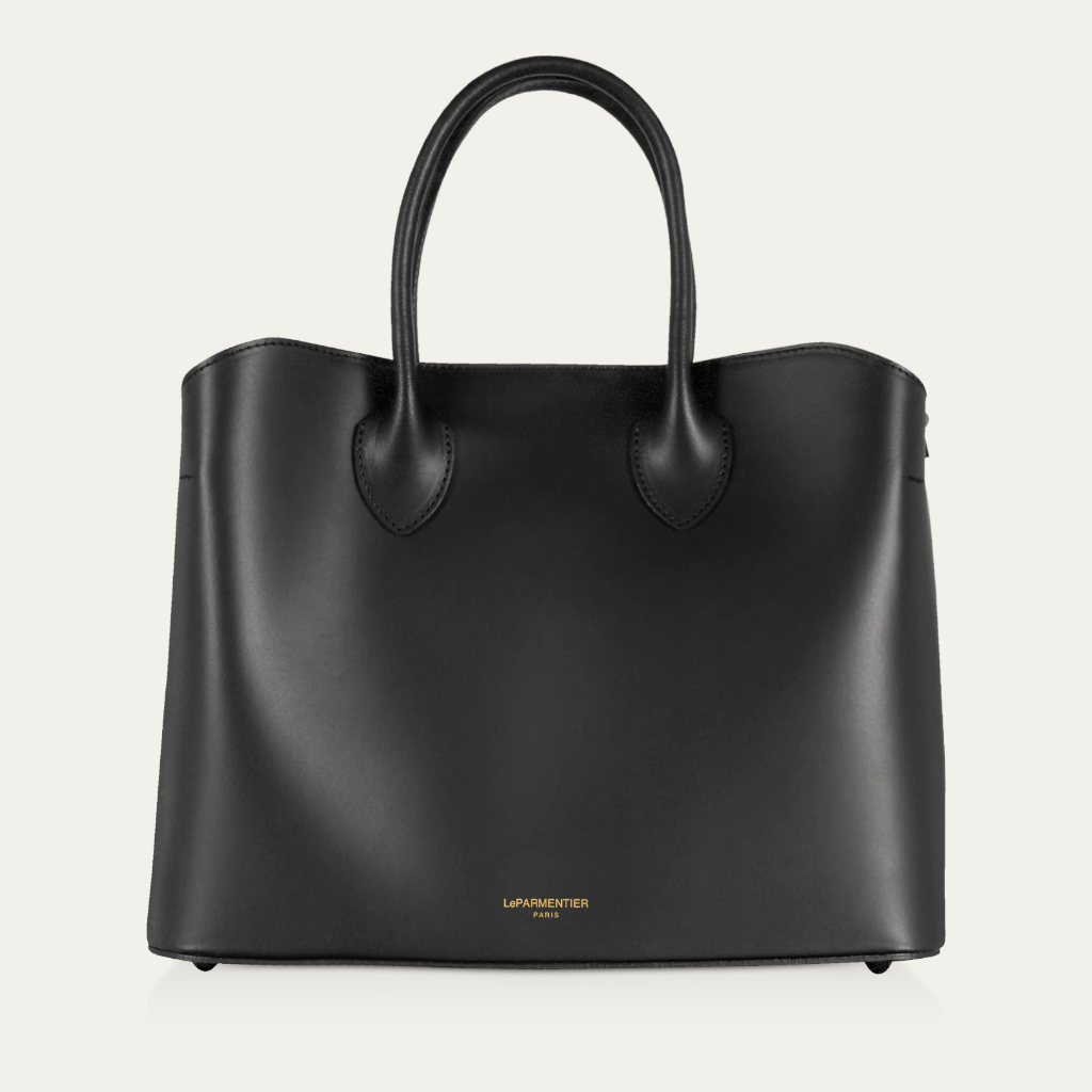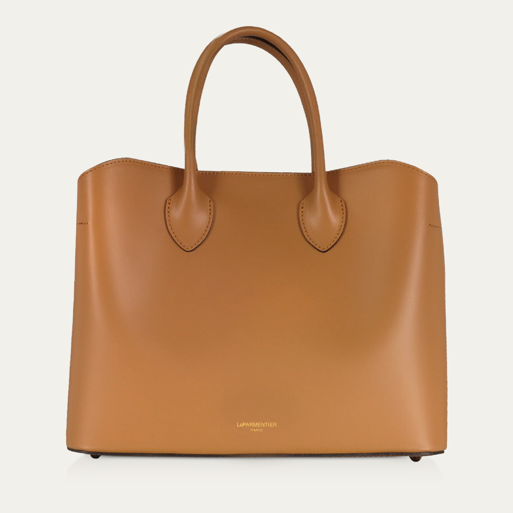 Jackie Leather Tote Bag crafted in neutral hued smooth genuine Italian calf leather, has simple design elements that create a refined aesthetic sure to compliment your wardrobe. Featuring double rolled handles, snap magnetic closure, contrast interior, center detachable zip pouch, flat bottom for stability with protective feet, and gunmetal hardware. Made in Italy.