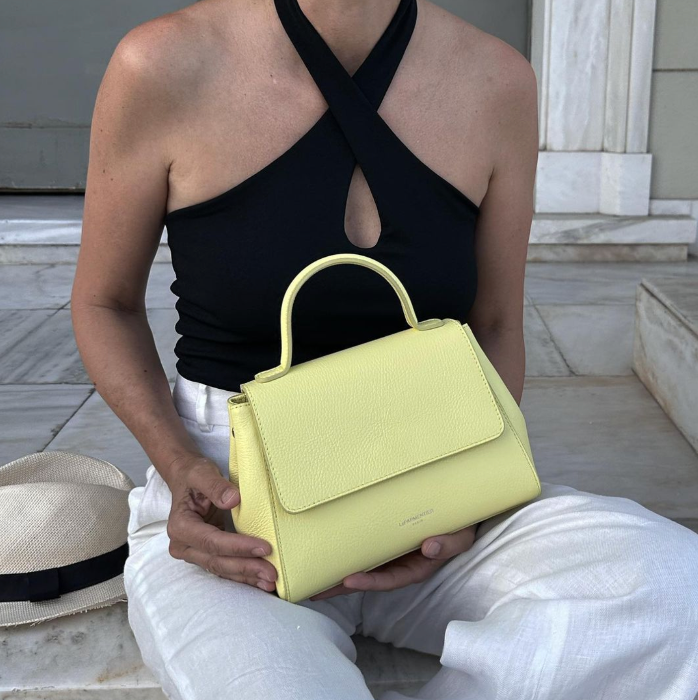 Hammered leather top handle lady handbag with adjustable crossbody strap included. Comfortable to use during the day it has a perfect design to take it to work or to important meetings. Spacious but not too big it lends itself well to follow you during every activity of the day, and maybe, even of the night.