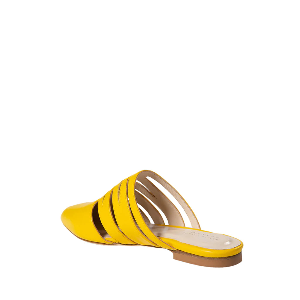 Yellow leather designed to replicate the Monstera deliciosa. Delicate stitching with a 10mm heel with leather insole and outsole. Its distinctive design and durable materials make it perfect for any occasion. This shoe will give any ensemble an eye-catching touch that is sure to be remembered.