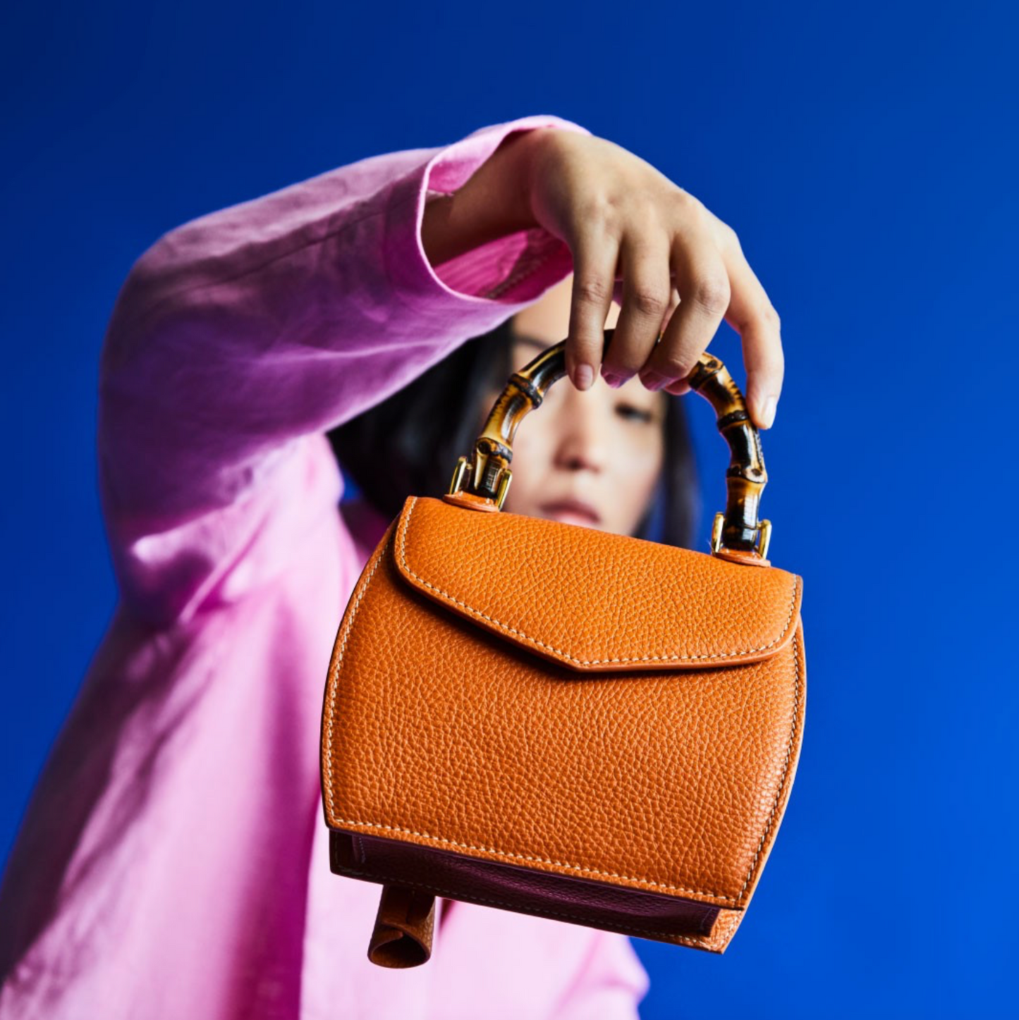 The Minny top handle bag by Buti Pelletterie is crafted from Italian-sourced soft calf Alce Bottalato leather and features an iconic bamboo handle. It comes with an adjustable shoulder strap for cross-body wear. Boasting a classic style, the bag has a full grain pattern and a front magnetic flap closure, giving an elegant timeless look. Inside, the single compartment is lined with suede and a wall zip pocket. Durable and versatile, Minny is perfect for everyday use.