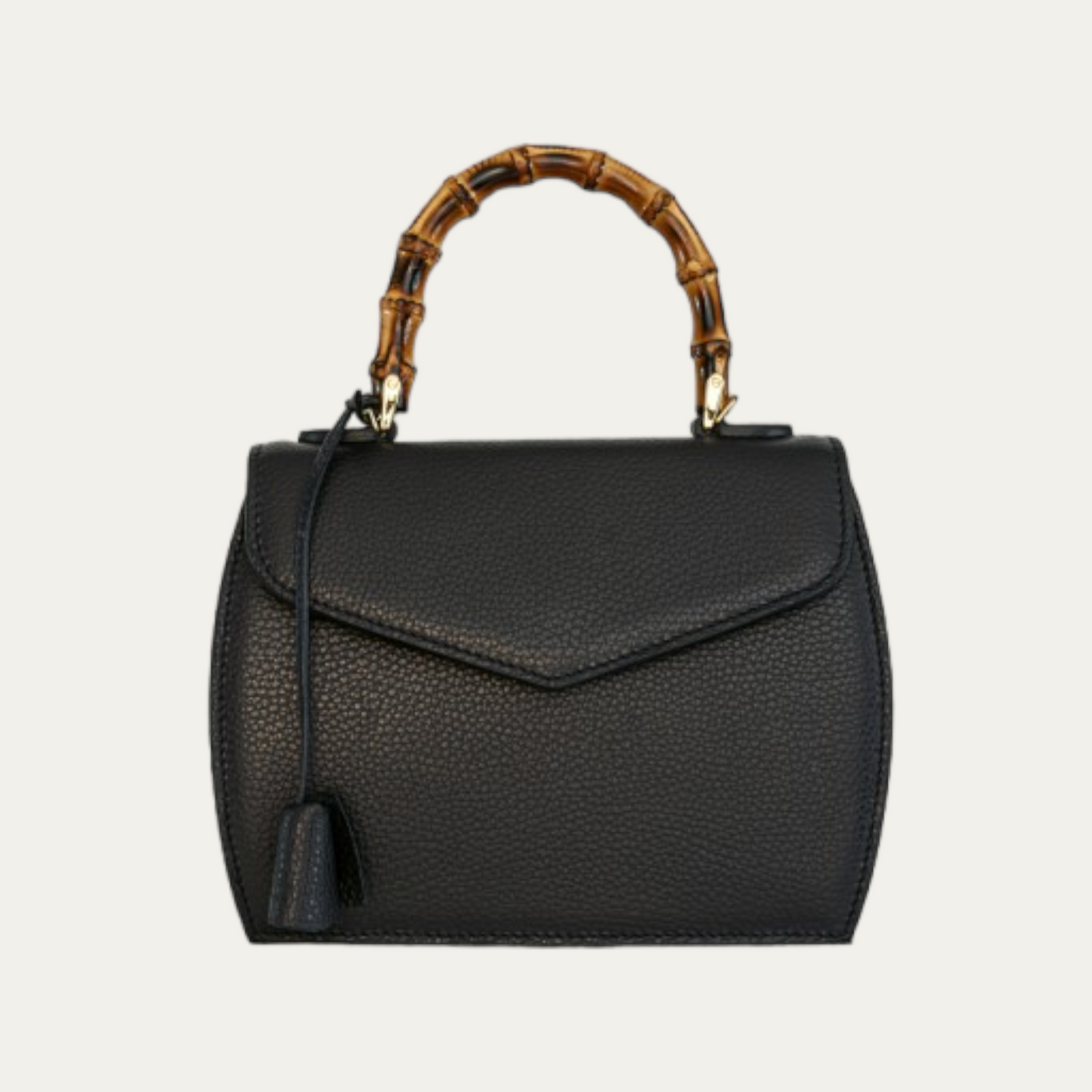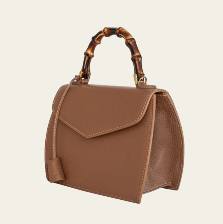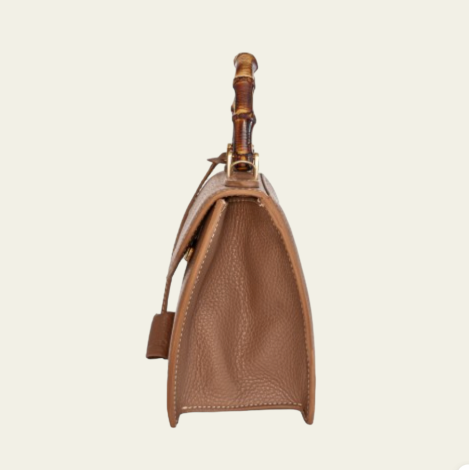 The Minny Medium top handle bag by Buti Pelletterie is crafted from Italian-sourced soft calf Alce Bottalato leather and features an iconic bamboo handle. It comes with an adjustable shoulder strap for cross-body wear. Boasting a classic style, the bag has a full grain pattern and a front magnetic flap closure, giving an elegant timeless look. Inside, the single compartment is lined with suede and a wall zip pocket. Durable and versatile, the MINNY MEDIUM is perfect for everyday use.