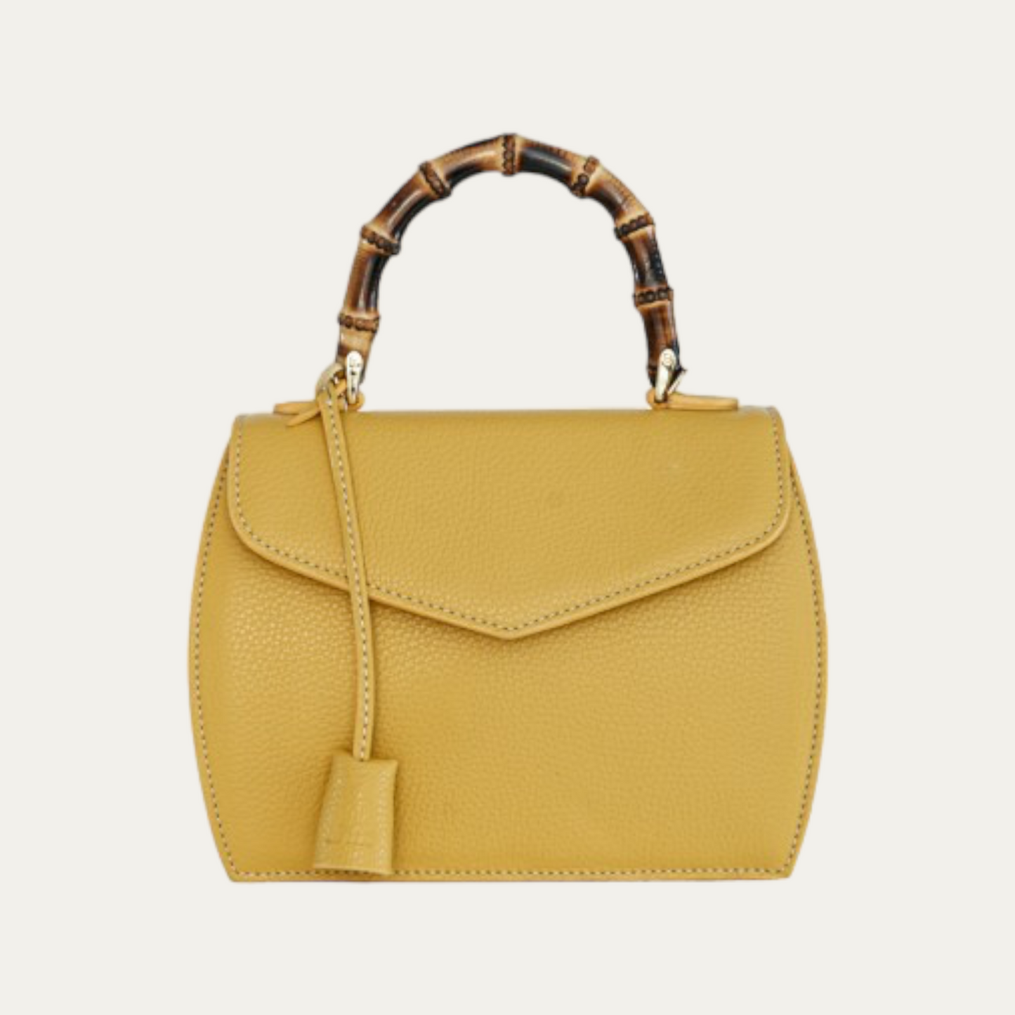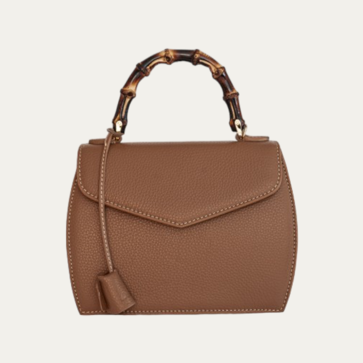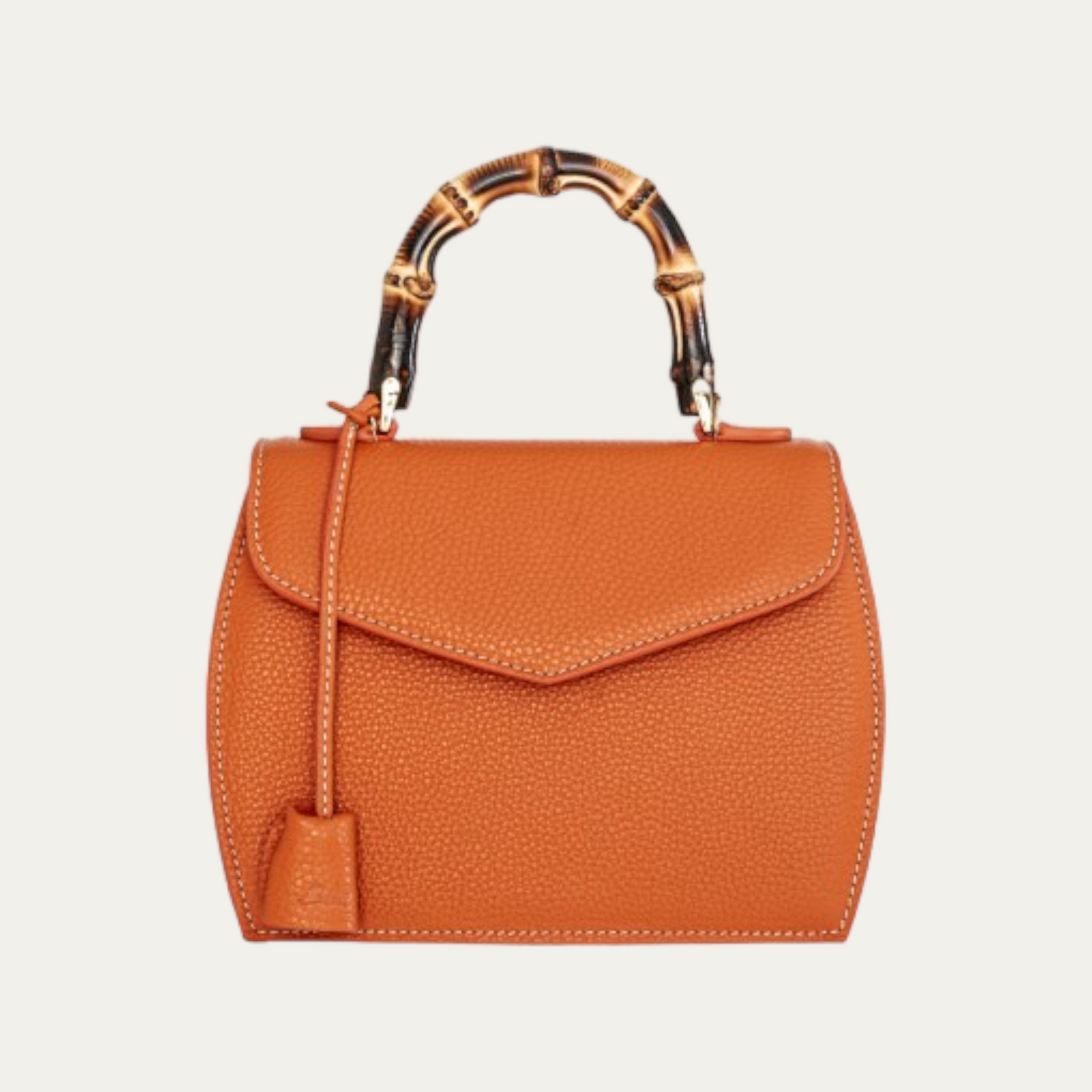 The Minny Medium top handle bag by Buti Pelletterie is crafted from Italian-sourced soft calf Alce Bottalato leather and features an iconic bamboo handle. It comes with an adjustable shoulder strap for cross-body wear. Boasting a classic style, the bag has a full grain pattern and a front magnetic flap closure, giving an elegant timeless look. Inside, the single compartment is lined with suede and a wall zip pocket. Durable and versatile, the MINNY MEDIUM is perfect for everyday use.