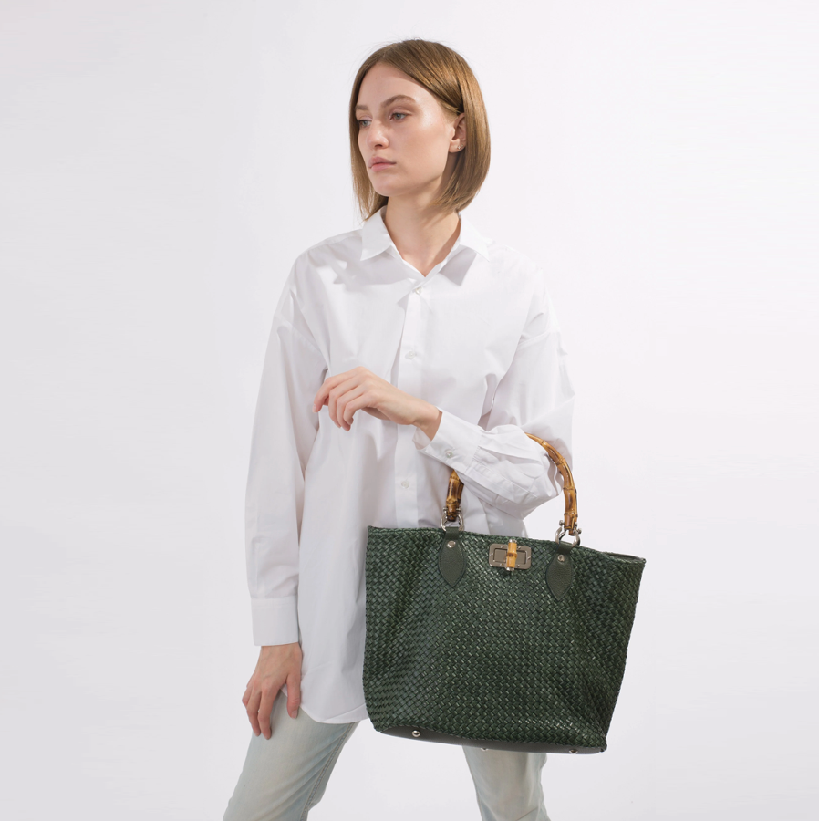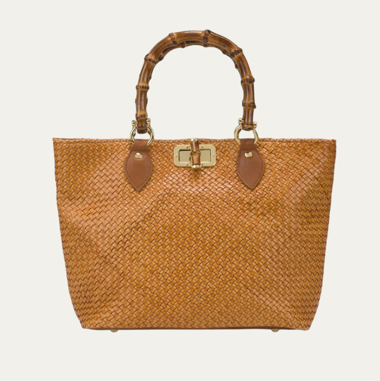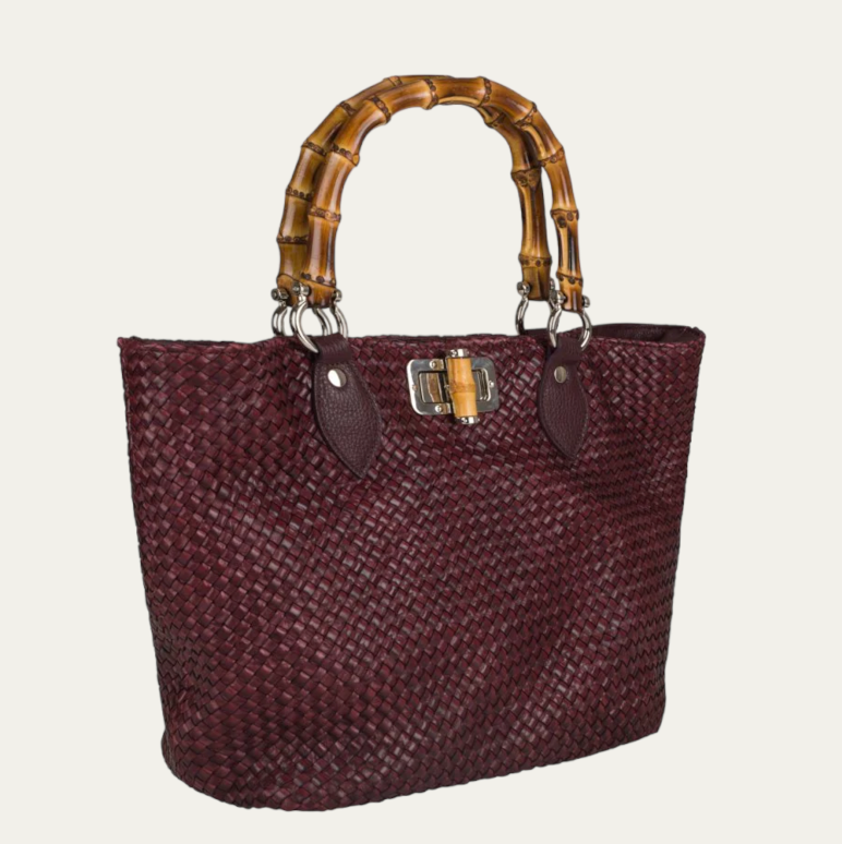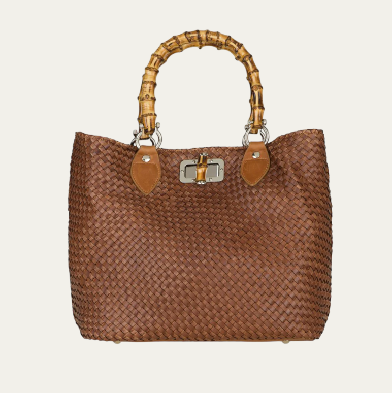 Nicoletta is a calfskin leather woven tote bag crafted by the expert artisans of Brunocenere in Alassio, Liguria. With its gorgeous texture and elegant details, this tote will become your new go to. It's large enough to fit notebooks, an umbrella, keys, and more!
