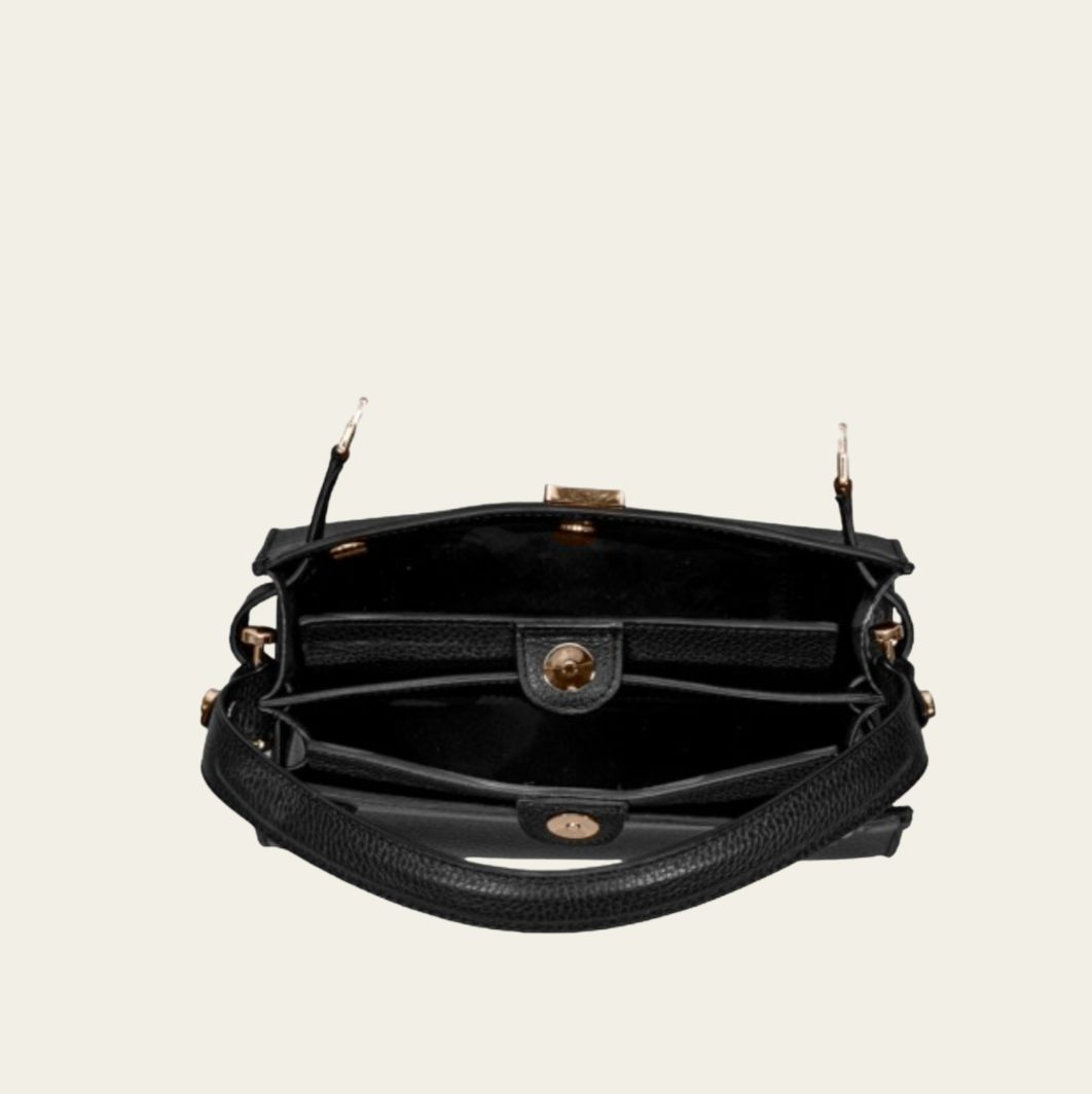 Olivia 26, created by Buti Pelletterie, is a statement-making addition to any day outfit. Handcrafted in Italy from vegetable-tanned leather and lined with luxurious suede, this classically stylish bag features a single top handle, two flaps closures and an adjustable and removable leather strap. Additionally, it has an interior zippered pocket, slip pocket, and four metal feet.