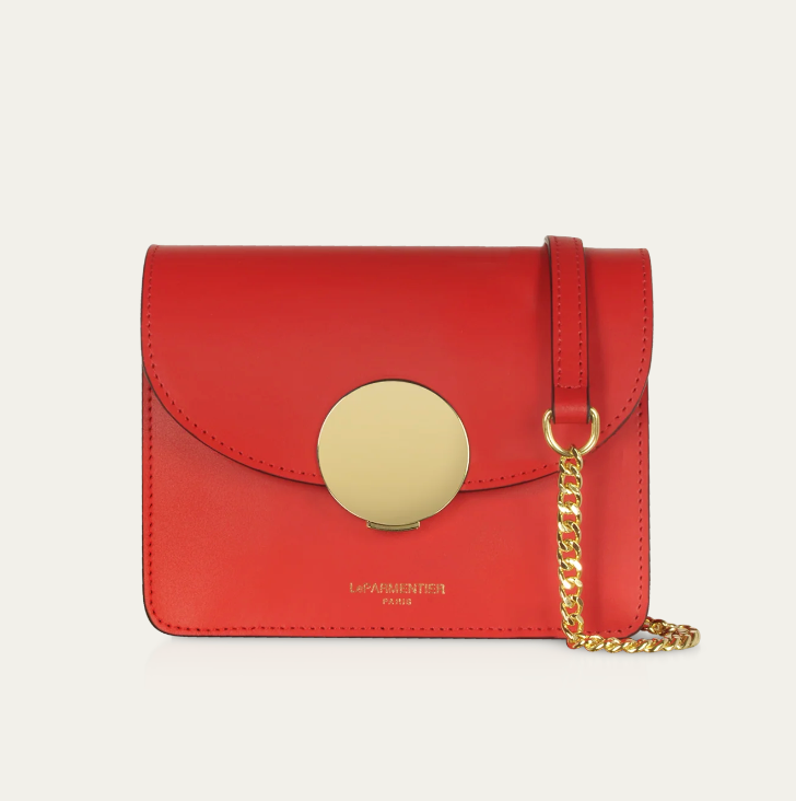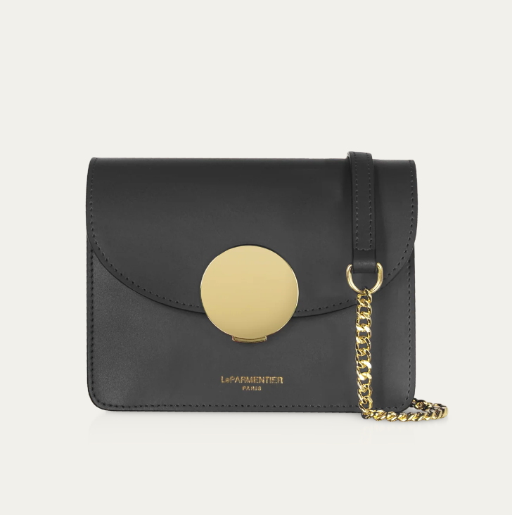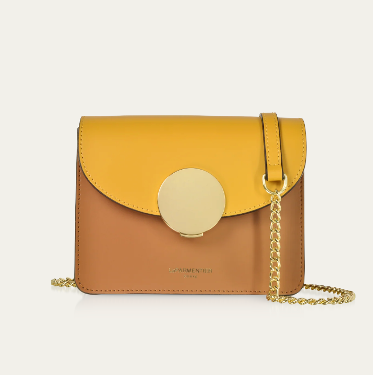 New Ondina Mini Shoulder Bag crafted in smooth genuine Italian calf leather, is the elegant choice with its modern lined silhouette and petite form for all of your little necessities day or night. Featuring flap top circular push lock closure, chain and leather shoulder strap, internal pocket, tonal stitching and gold tone hardware. Hand made in Italy.