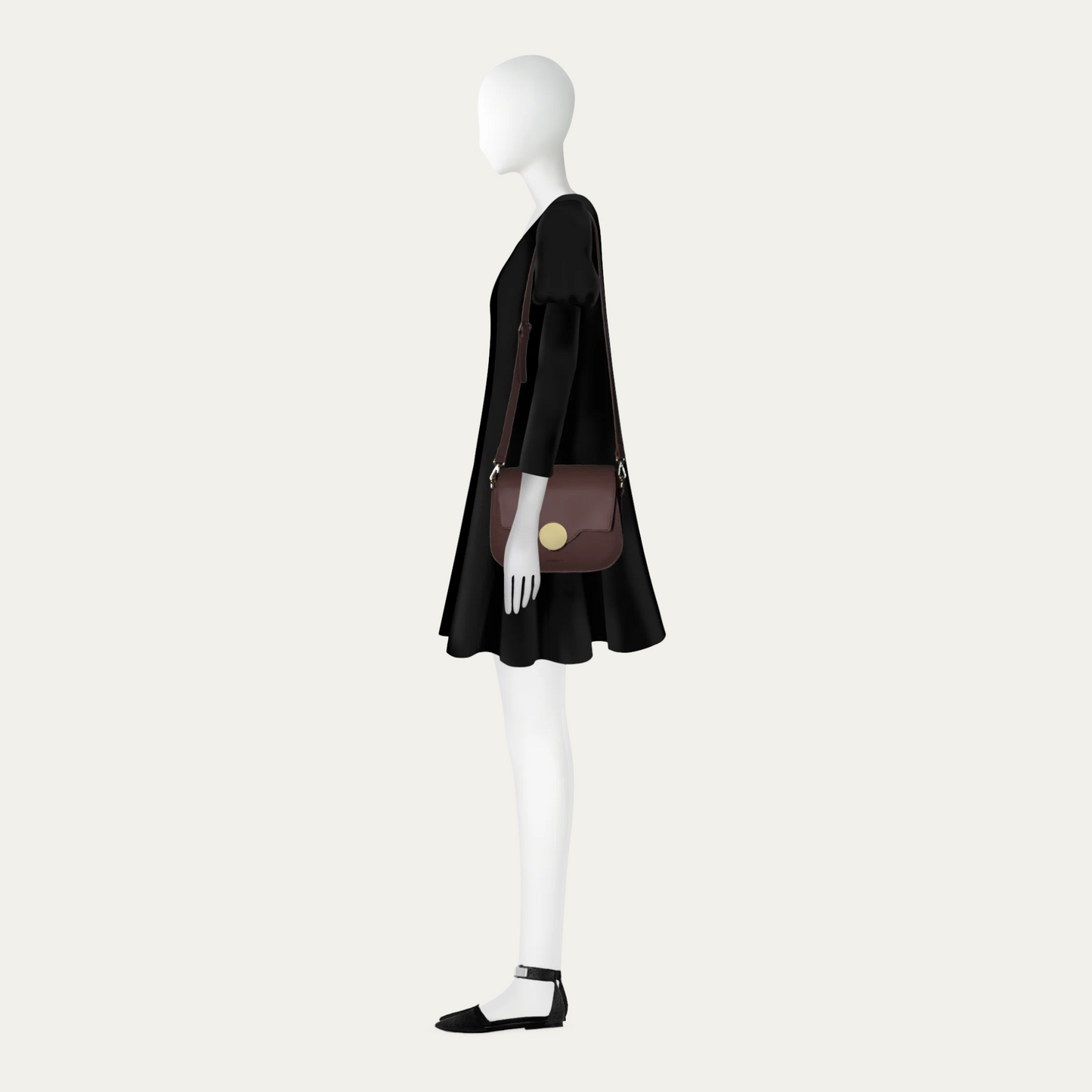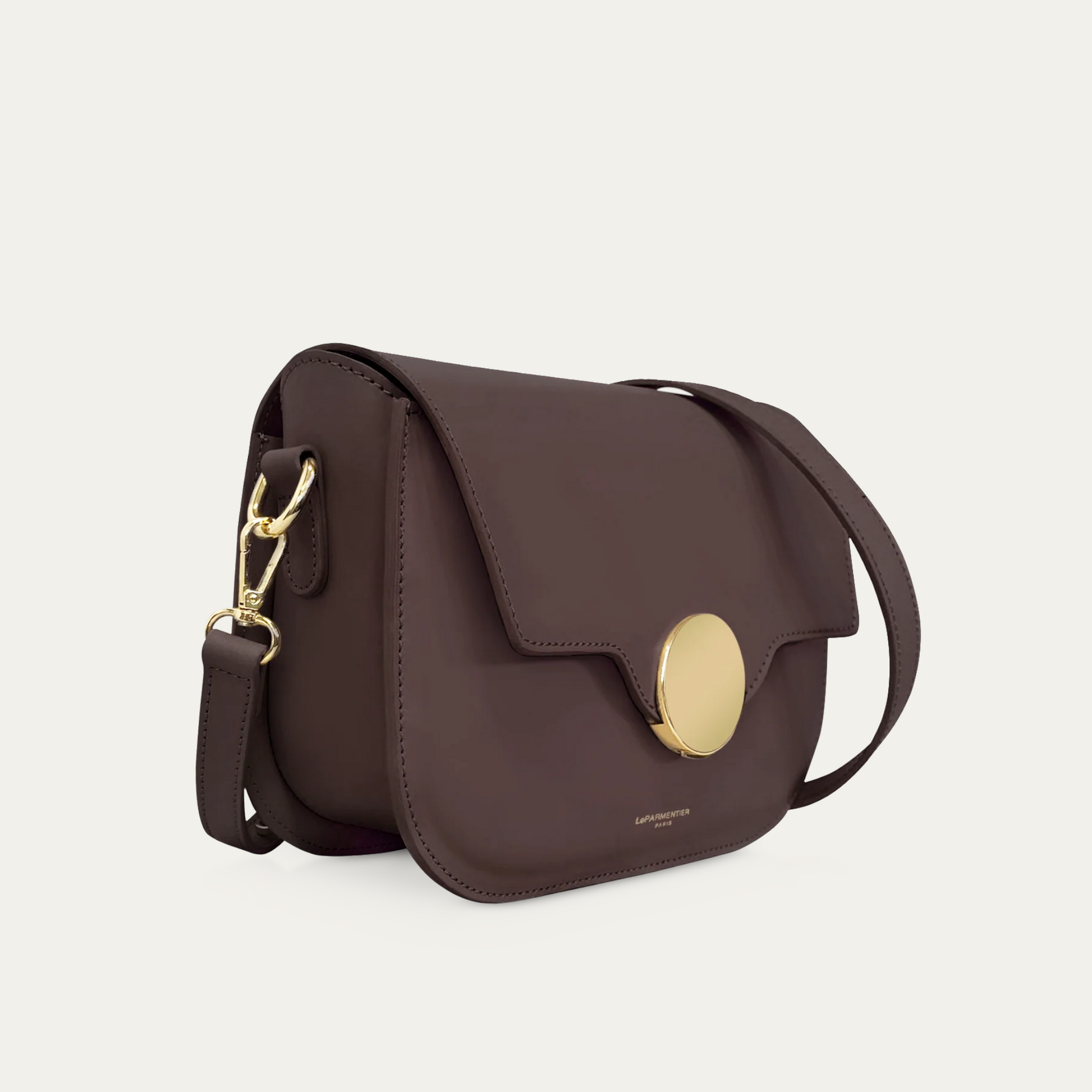 Crafted in genuine leathers it guarantees quality and confort also with its comfortable and adjustable shoulder strap. The squared flap ends in a rounded shape to envelope the top magnetic snap closure, more specifically the bold hardware detail on it.