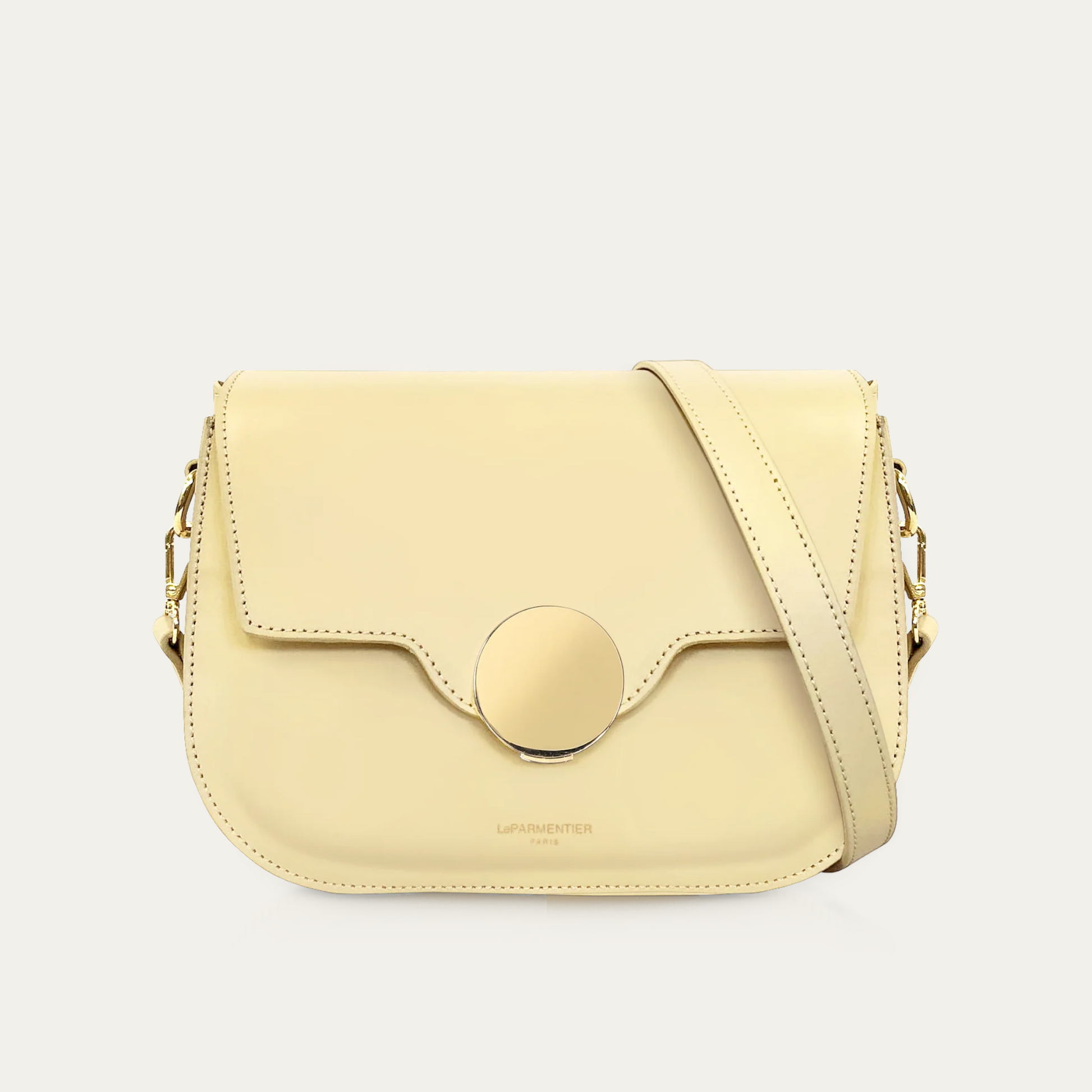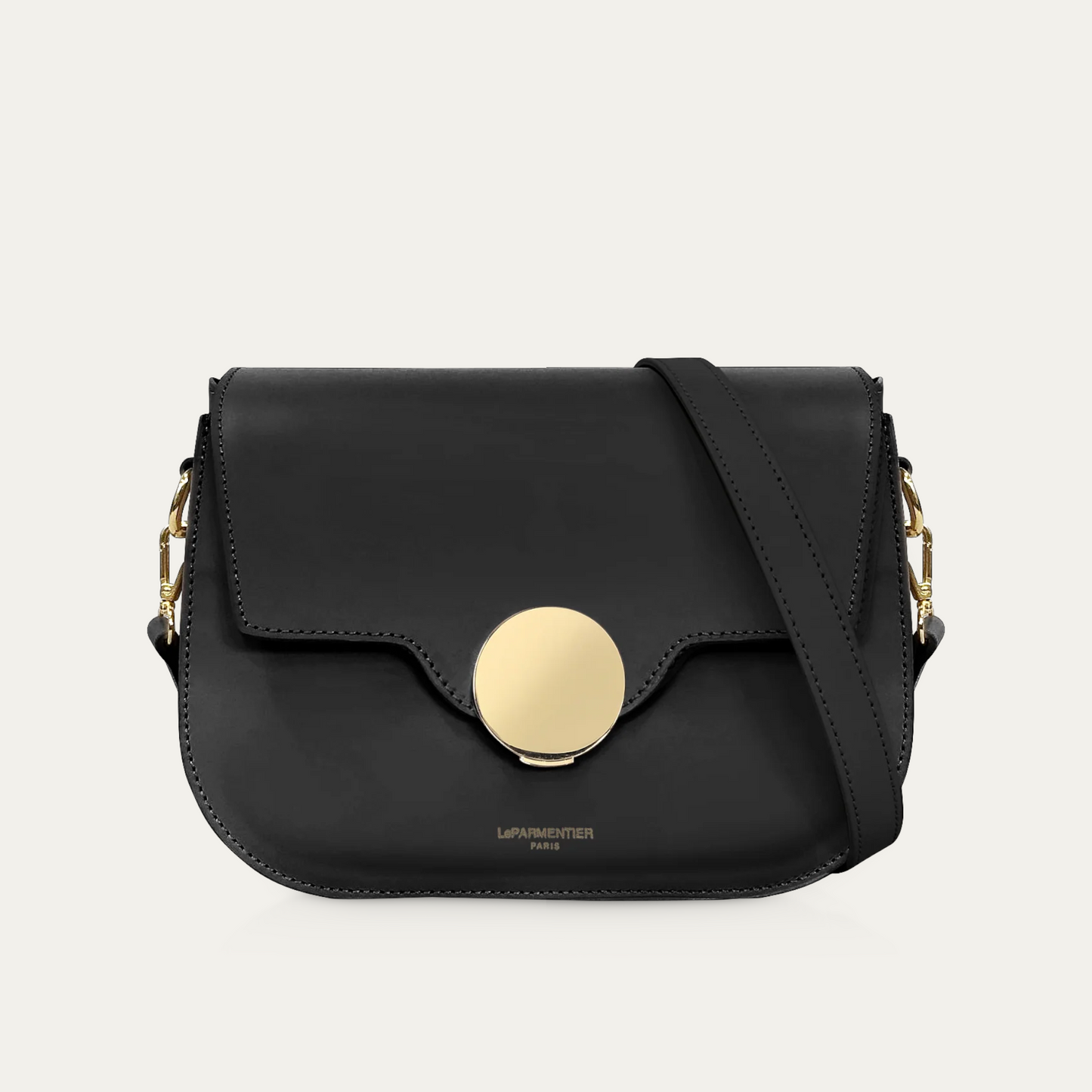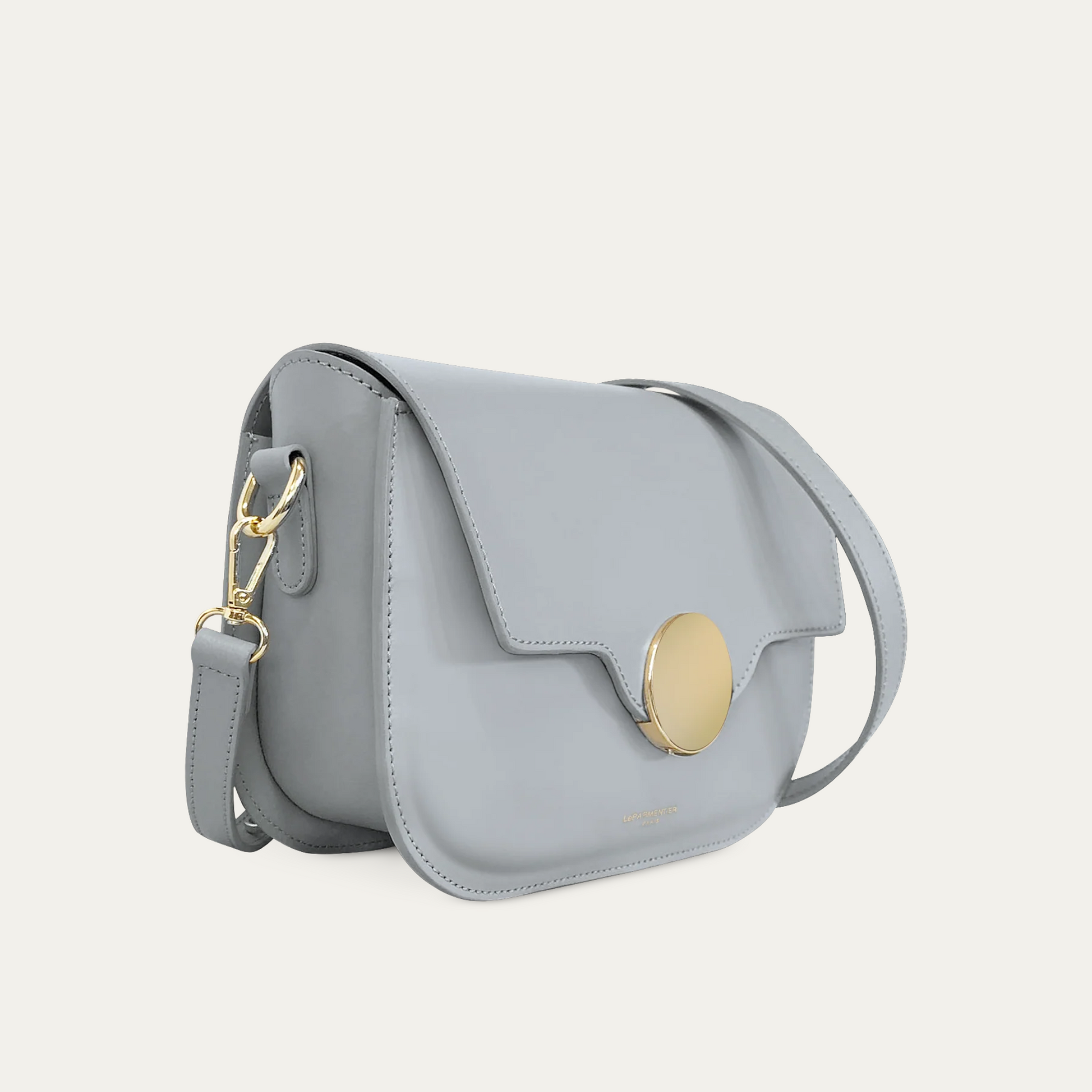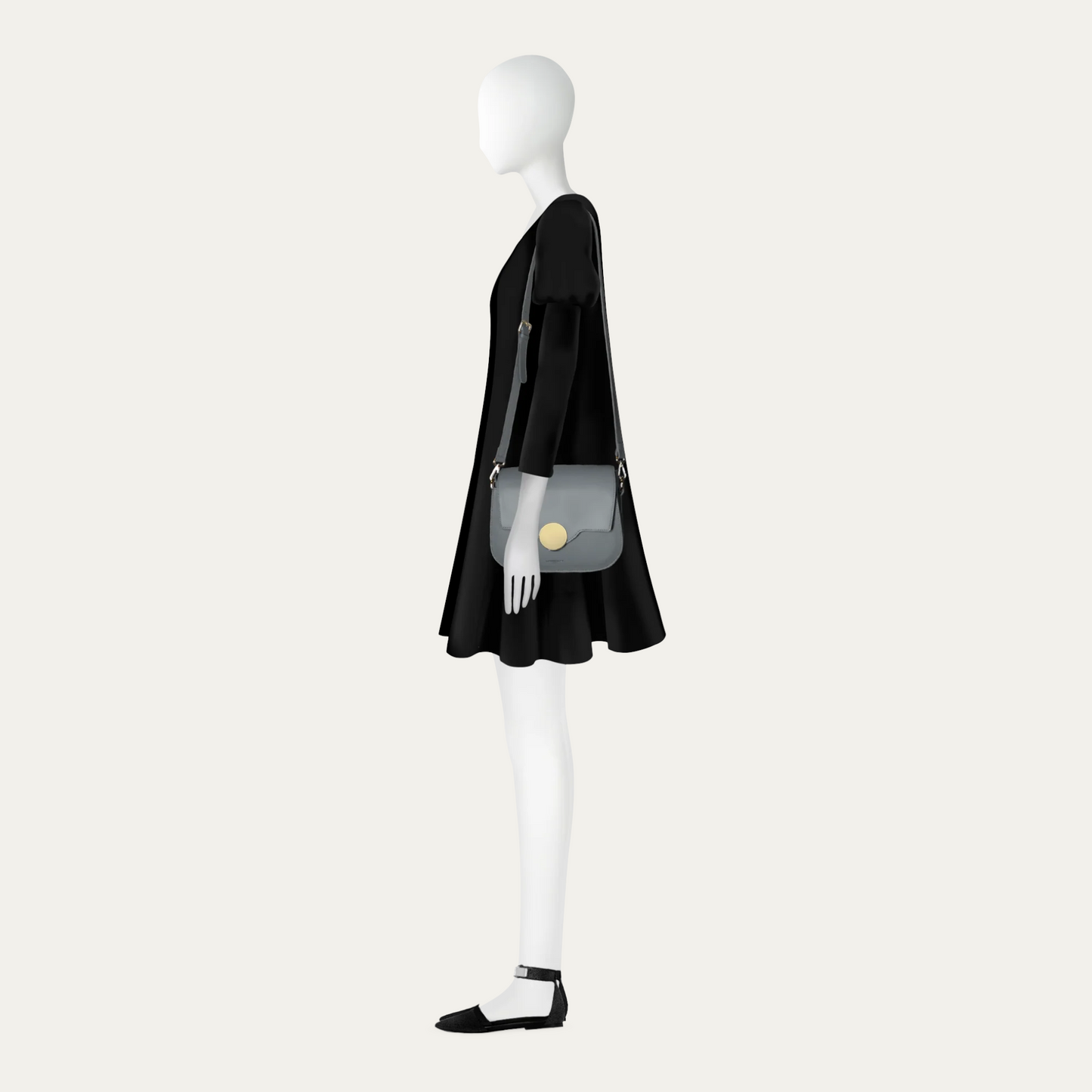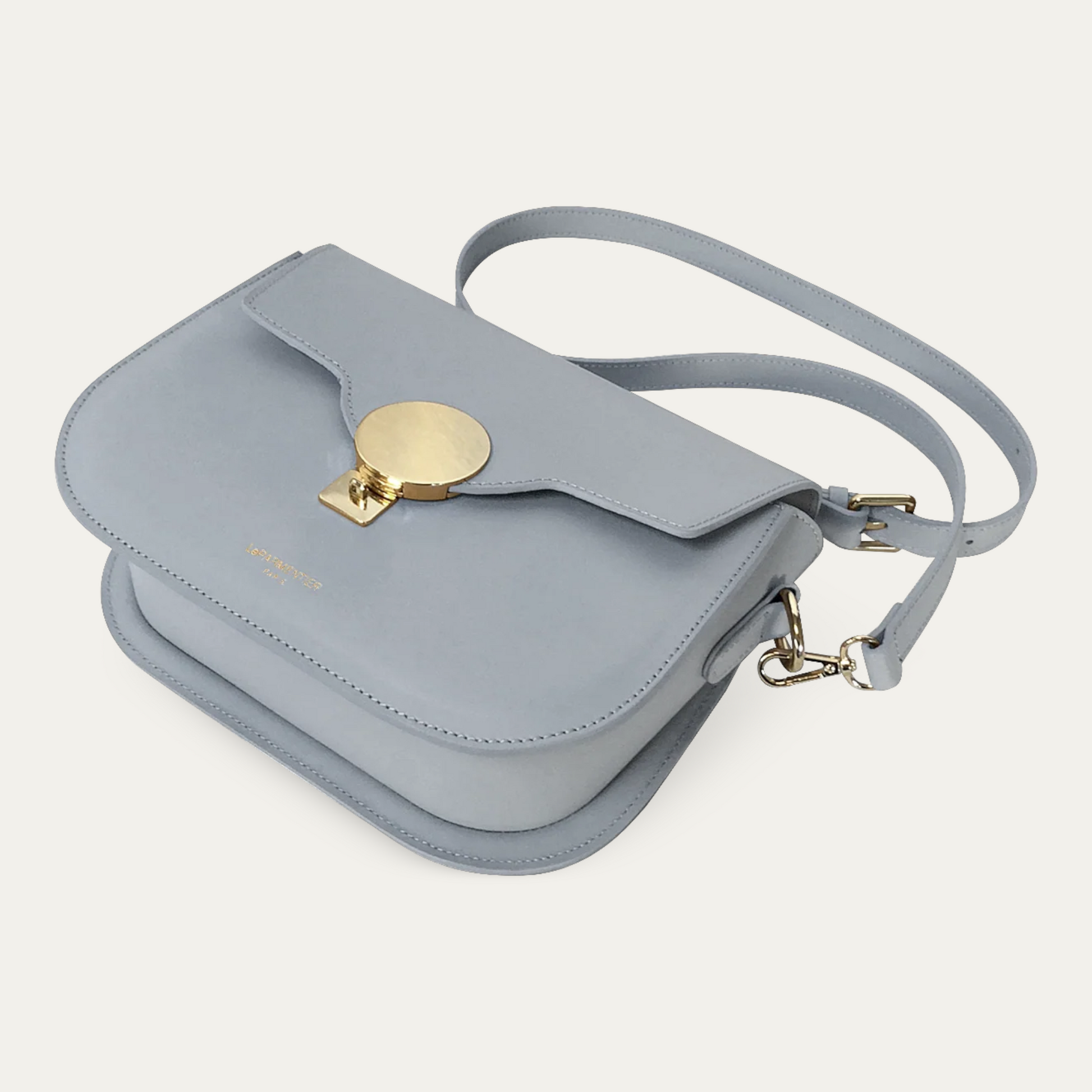 Crafted in genuine leathers it guarantees quality and confort also with its comfortable and adjustable shoulder strap. The squared flap ends in a rounded shape to envelope the top magnetic snap closure, more specifically the bold hardware detail on it.