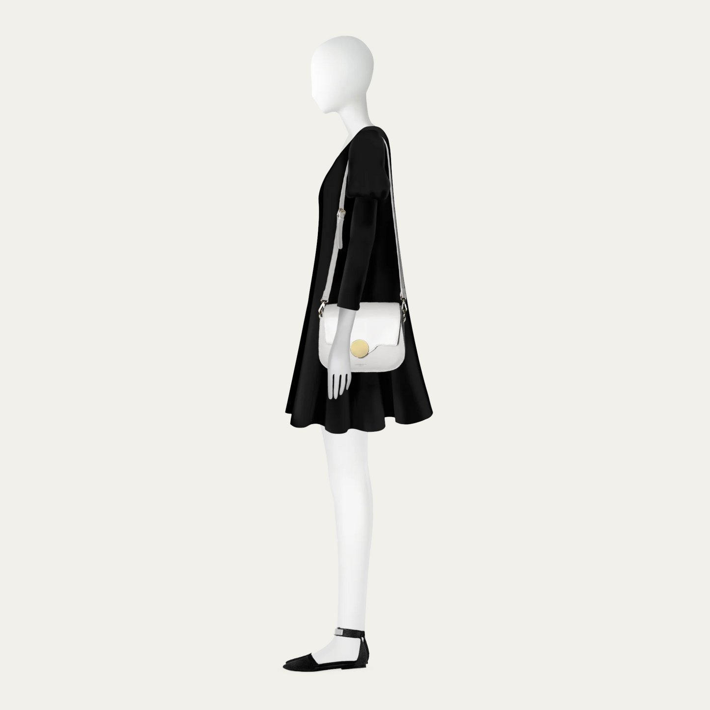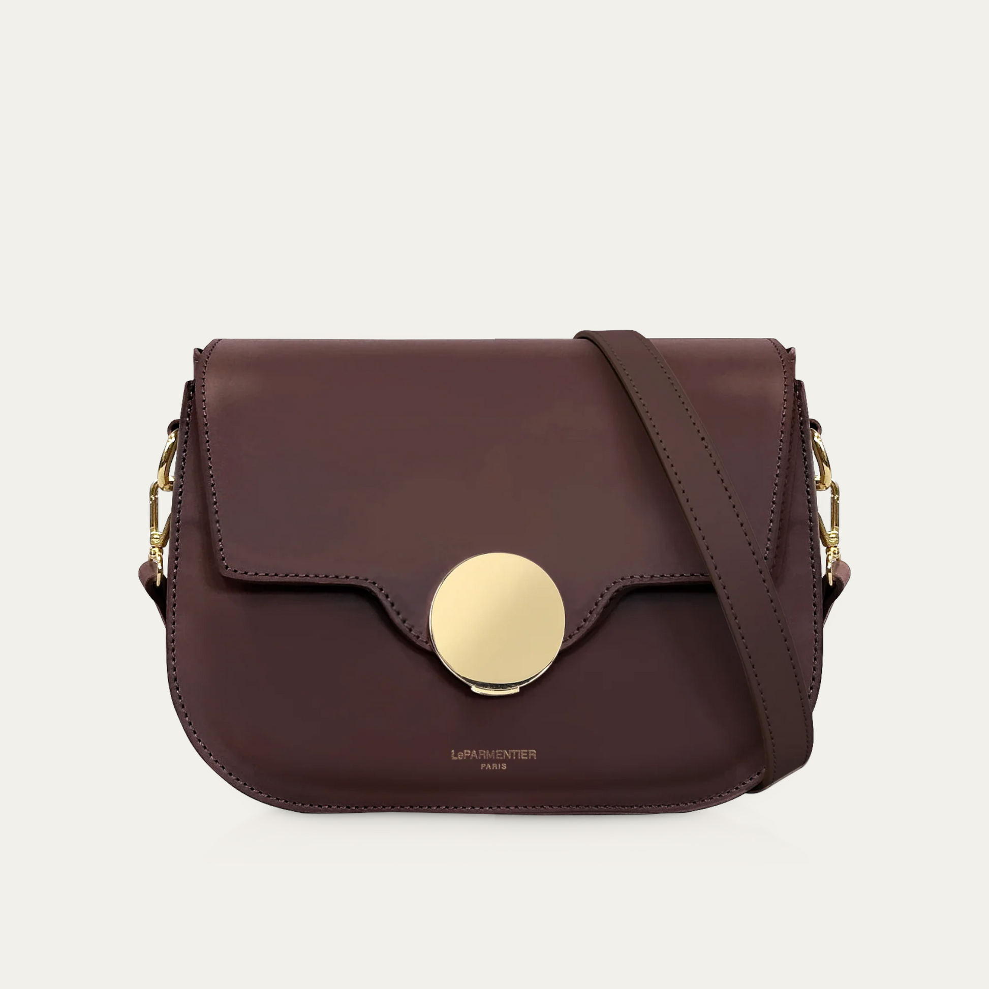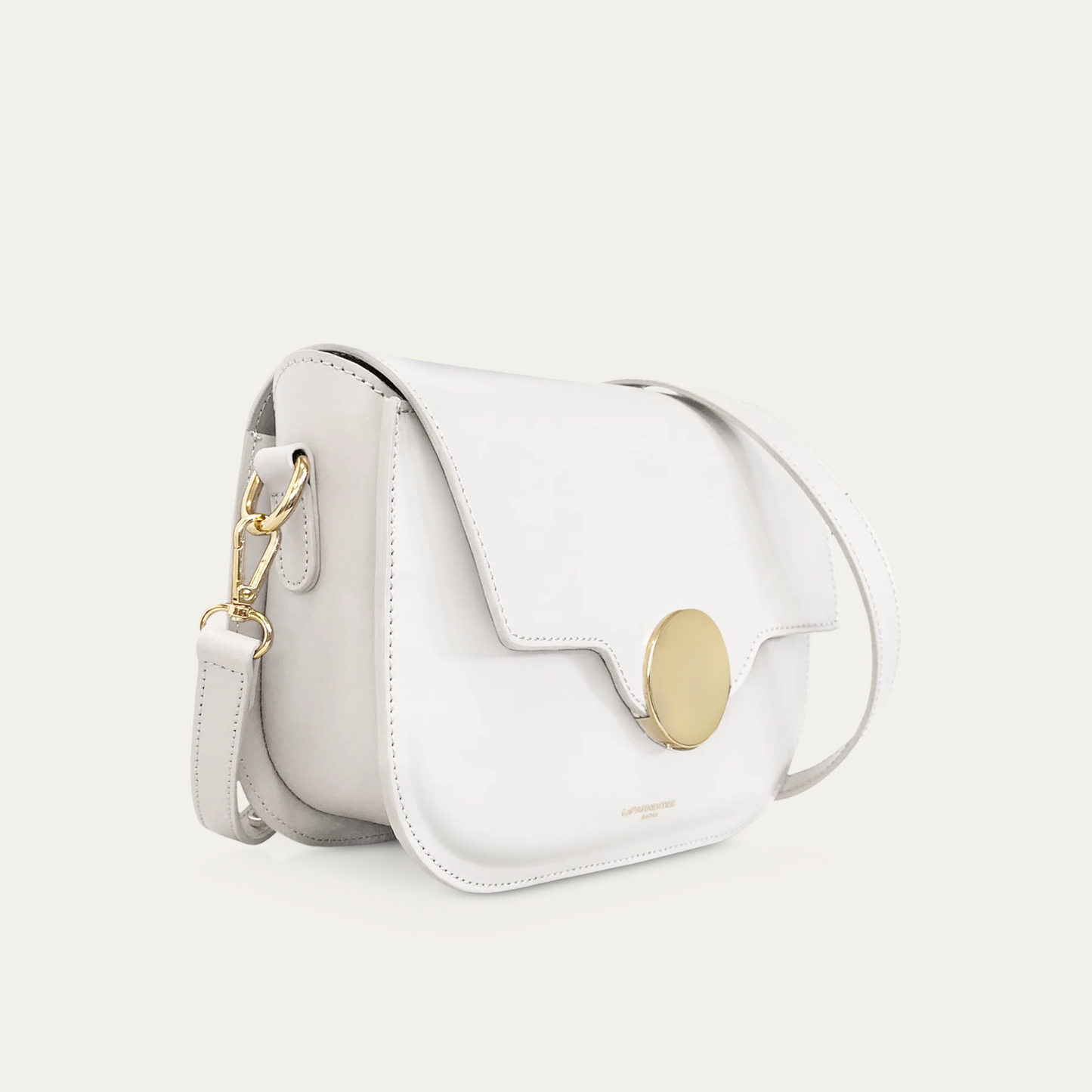 Crafted in genuine leathers it guarantees quality and confort also with its comfortable and adjustable shoulder strap. The squared flap ends in a rounded shape to envelope the top magnetic snap closure, more specifically the bold hardware detail on it.