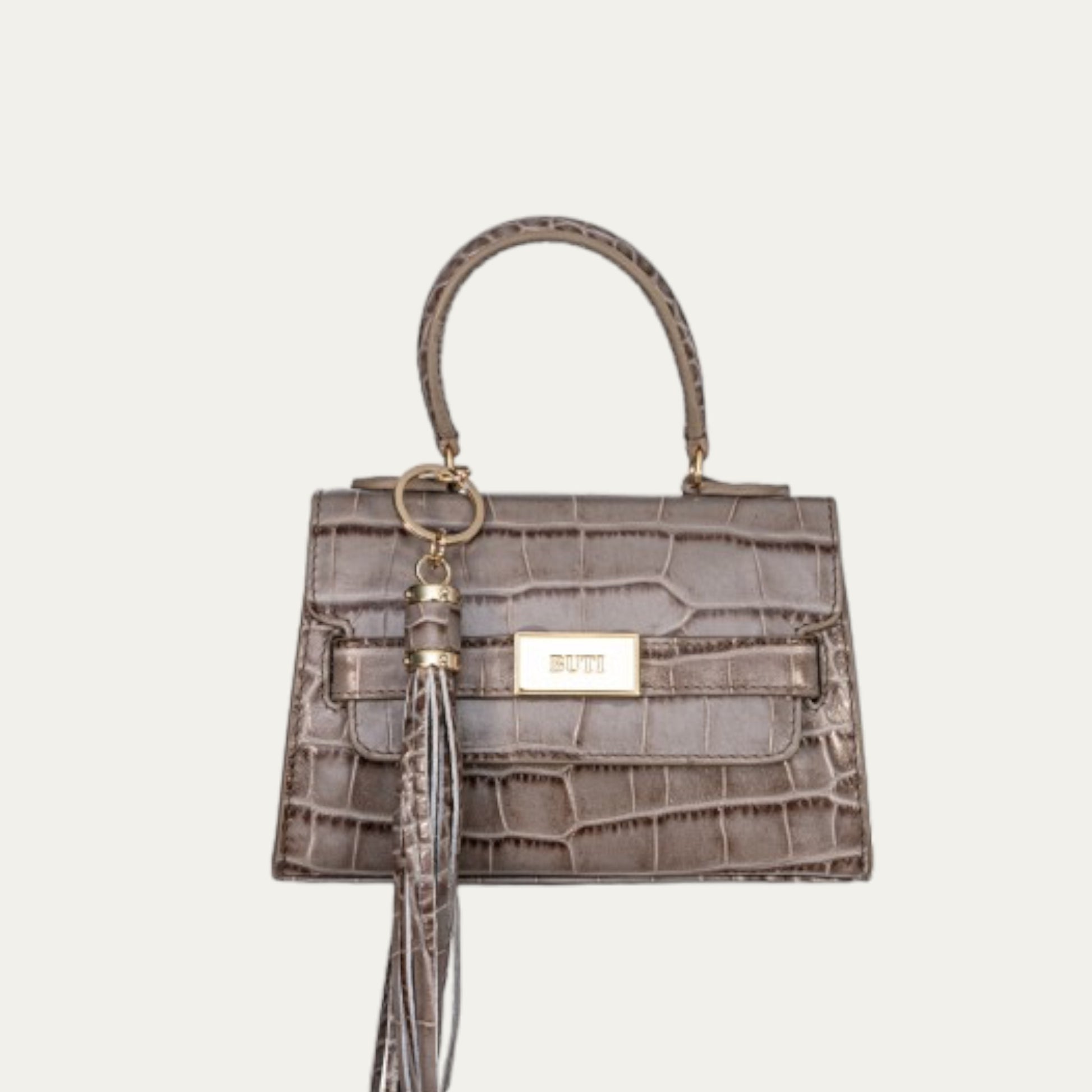 Susy mignon 20 by Buti, made of Calf Cocco Mousse Stamp, is a handheld handbag, this eye-catching piece is both practical and polished.