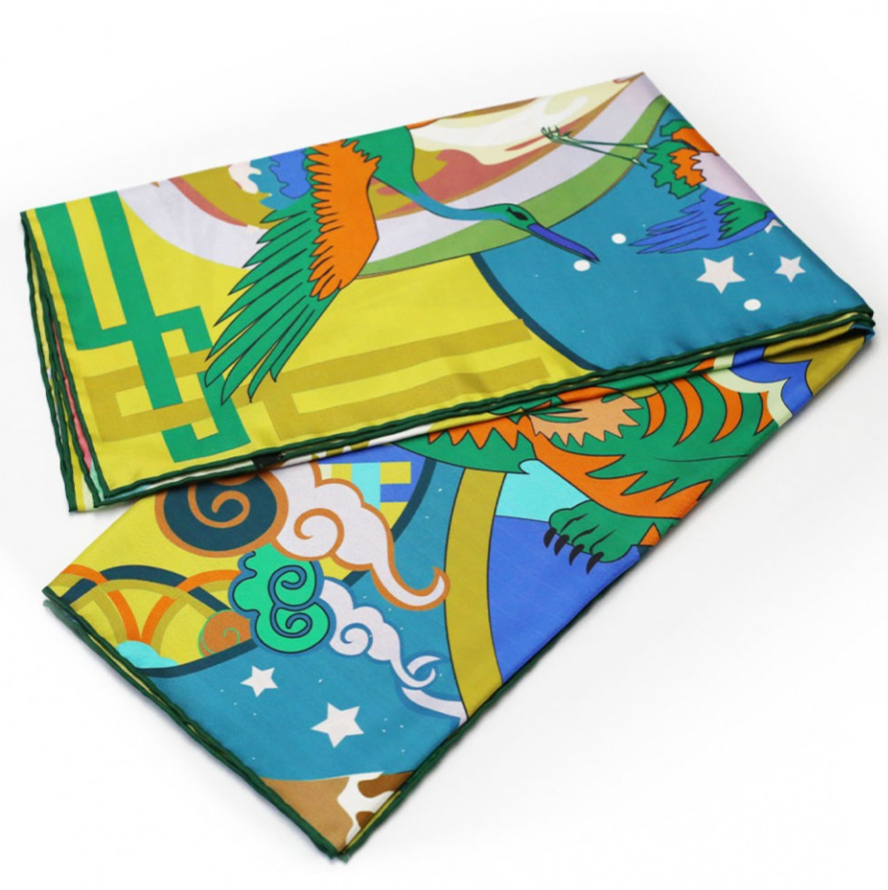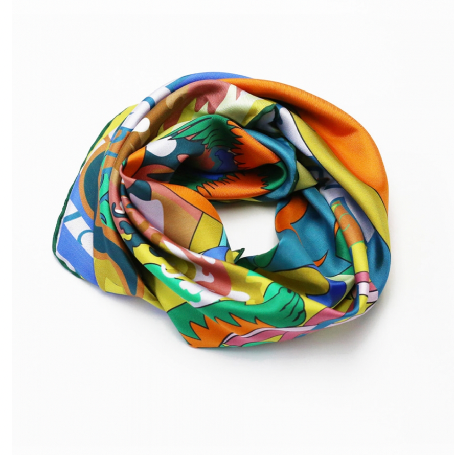 Wild is a foulard crafted by Chiara Daverio in Milan, Lombardy. This colorful foulard is made of 100% silk and features an abstract design with geometric lines in the corners. Get creative and wear Wild around your neck, in your hair, or even on your favorite accessories.